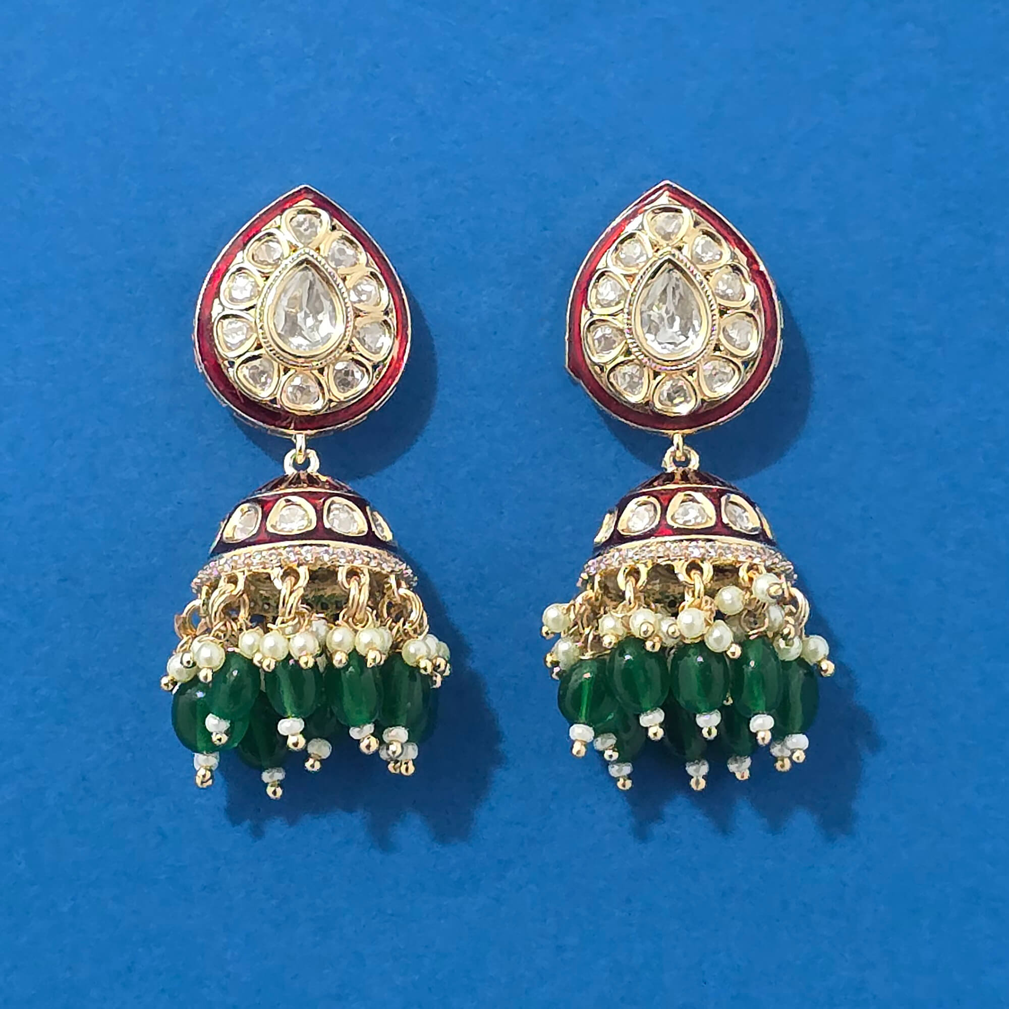 Kanhai Jewels offers an exclusive collection of finest quality crafted Fashion Jewellery in various colors. We make sure that our collection of Kundan Jhumki With Carat Plating are beautiful, elegent & will surely galvanize you, because our products are unique, comfortable, fashion forward & very popular for the rich look. Base Metal of our product is Alloy, i.e Mixing of Copper & Brass. We pack all the products using quality packaging material to ensure safe and secure transportation.