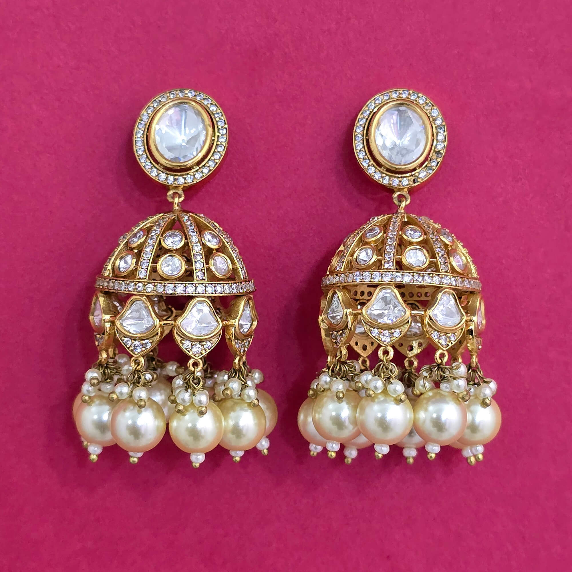 Kanhai Jewels offers an exclusive collection of finest quality crafted Fashion Jewellery in various colors. We make sure that our collection of Kundan Jhumki With Victorian Plating are beautiful, elegent & will surely galvanize you, because our products are unique, comfortable, fashion forward & very popular for the rich look. Base Metal of our product is Alloy, i.e Mixing of Copper & Brass. We pack all the products using quality packaging material to ensure safe and secure transportation.