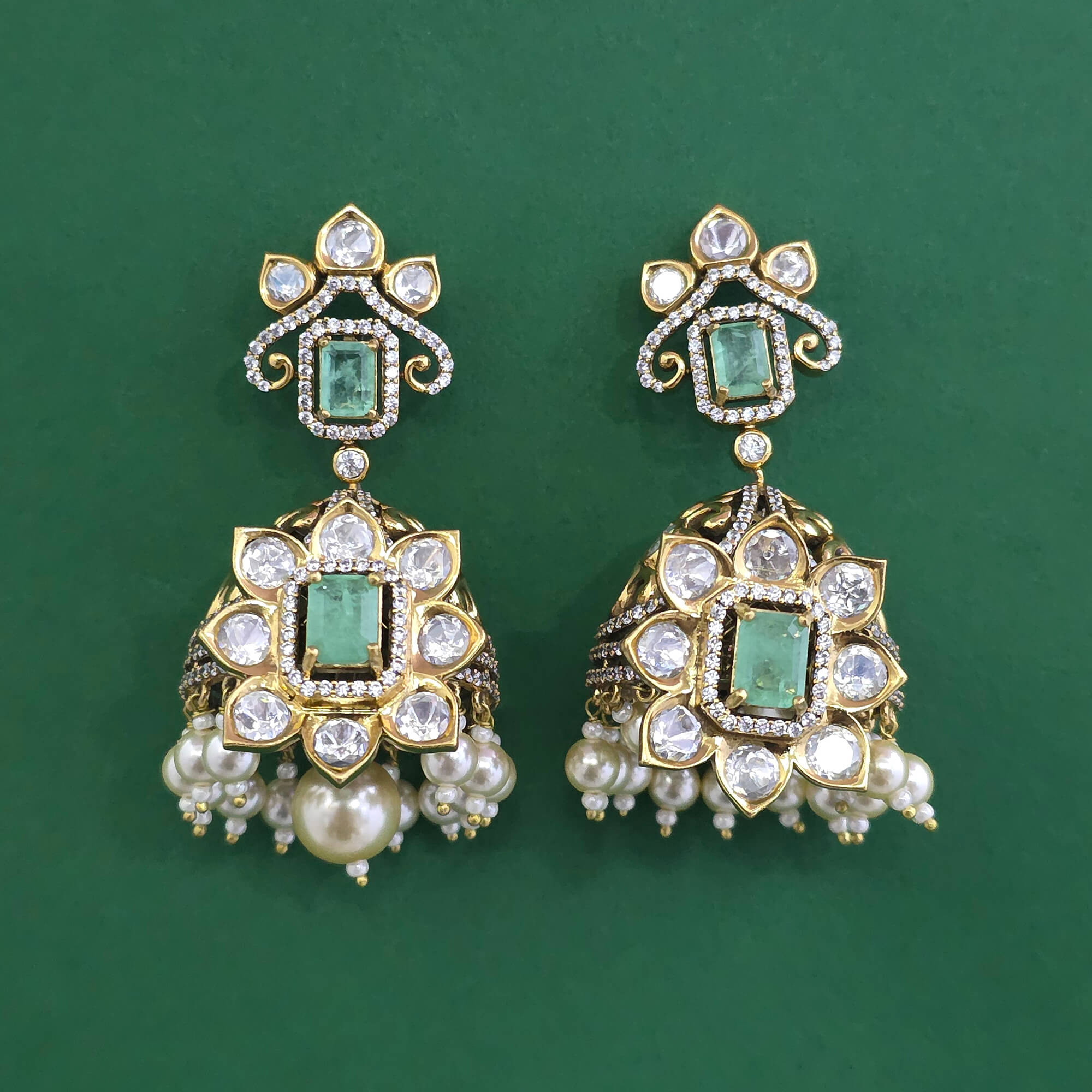 Kanhai Jewels offers an exclusive collection of finest quality crafted Fashion Jewellery in various colors. We make sure that our collection of Kundan Jhumki With Victorian Plating are beautiful, elegent & will surely galvanize you, because our products are unique, comfortable, fashion forward & very popular for the rich look. Base Metal of our product is Alloy, i.e Mixing of Copper & Brass. We pack all the products using quality packaging material to ensure safe and secure transportation.