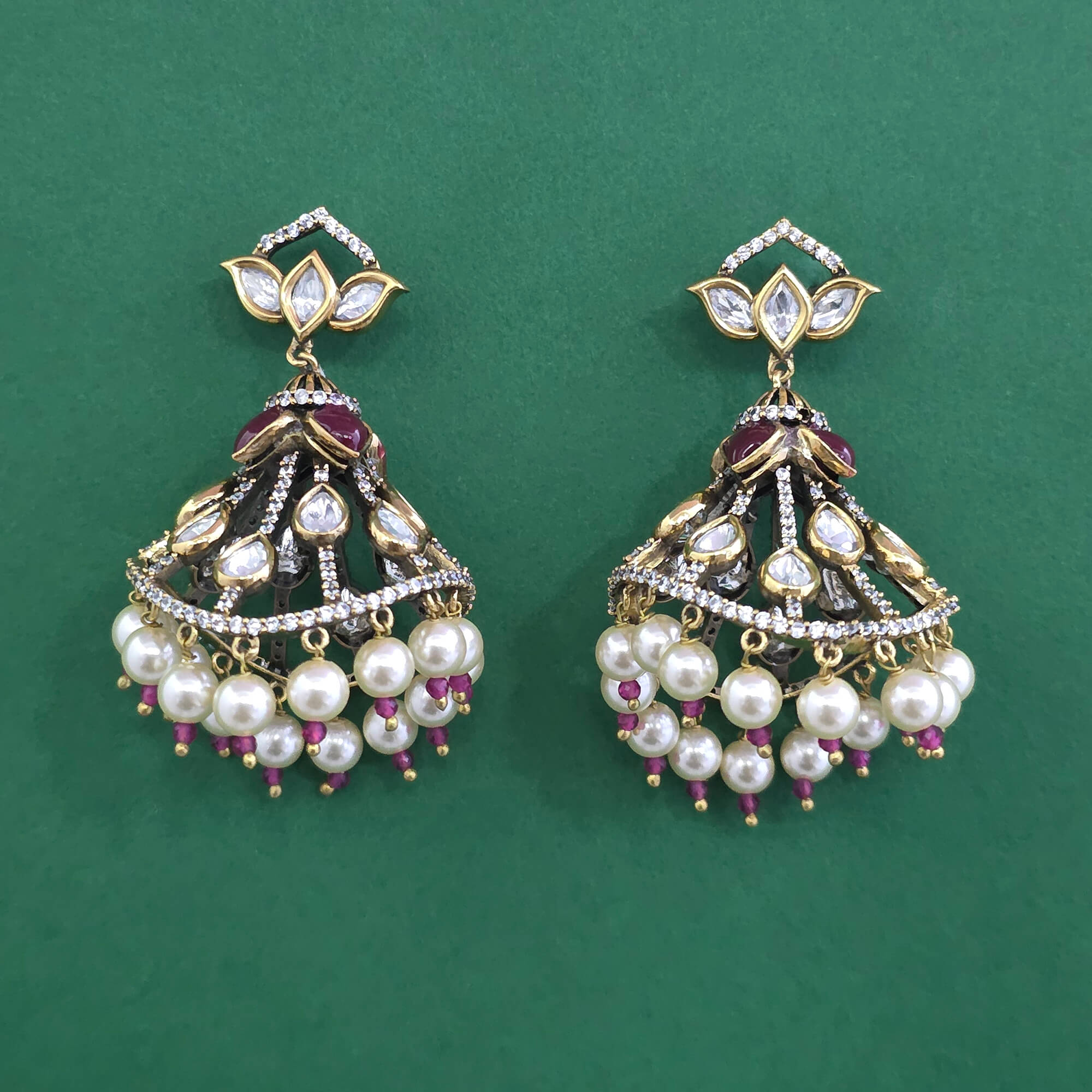 Home / Kundan Earring / kundan jhumki with victorian plating