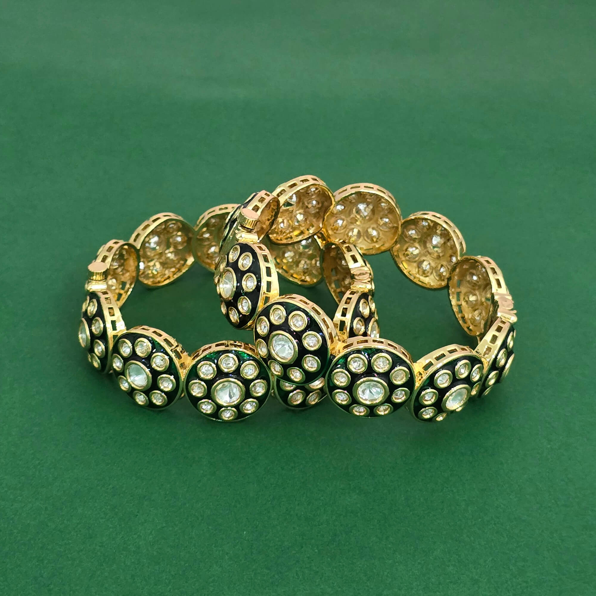 Home / Kundan Bangles / kundan meenakari bangles with gold plating