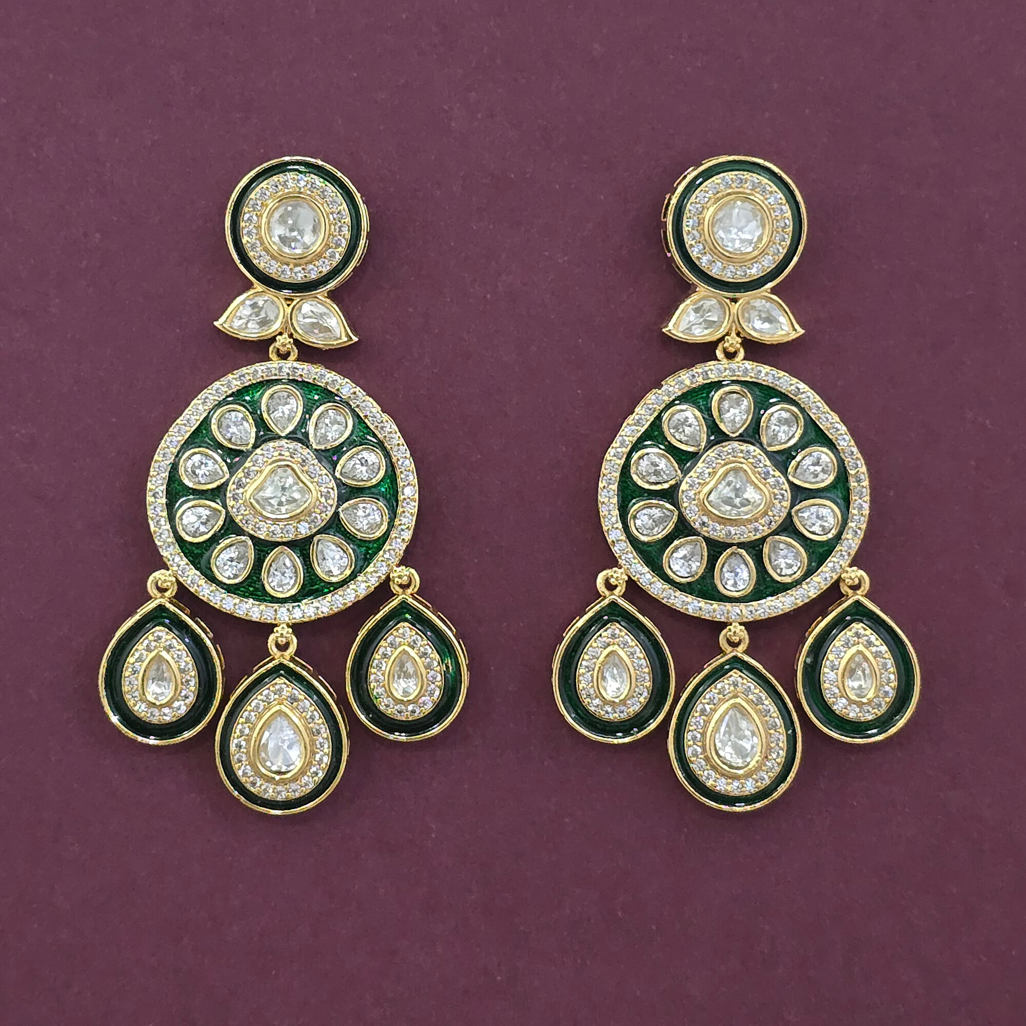 Kanhai Jewels offers an exclusive collection of finest quality crafted Fashion Jewellery in various colors. We make sure that our collection of Kundan Meenakari Earring With Carat Gold Plating are beautiful, elegent & will surely galvanize you, because our products are unique, comfortable, fashion forward & very popular for the rich look. Base Metal of our product is Alloy, i.e Mixing of Copper & Brass. We pack all the products using quality packaging material to ensure safe and secure transportation.
