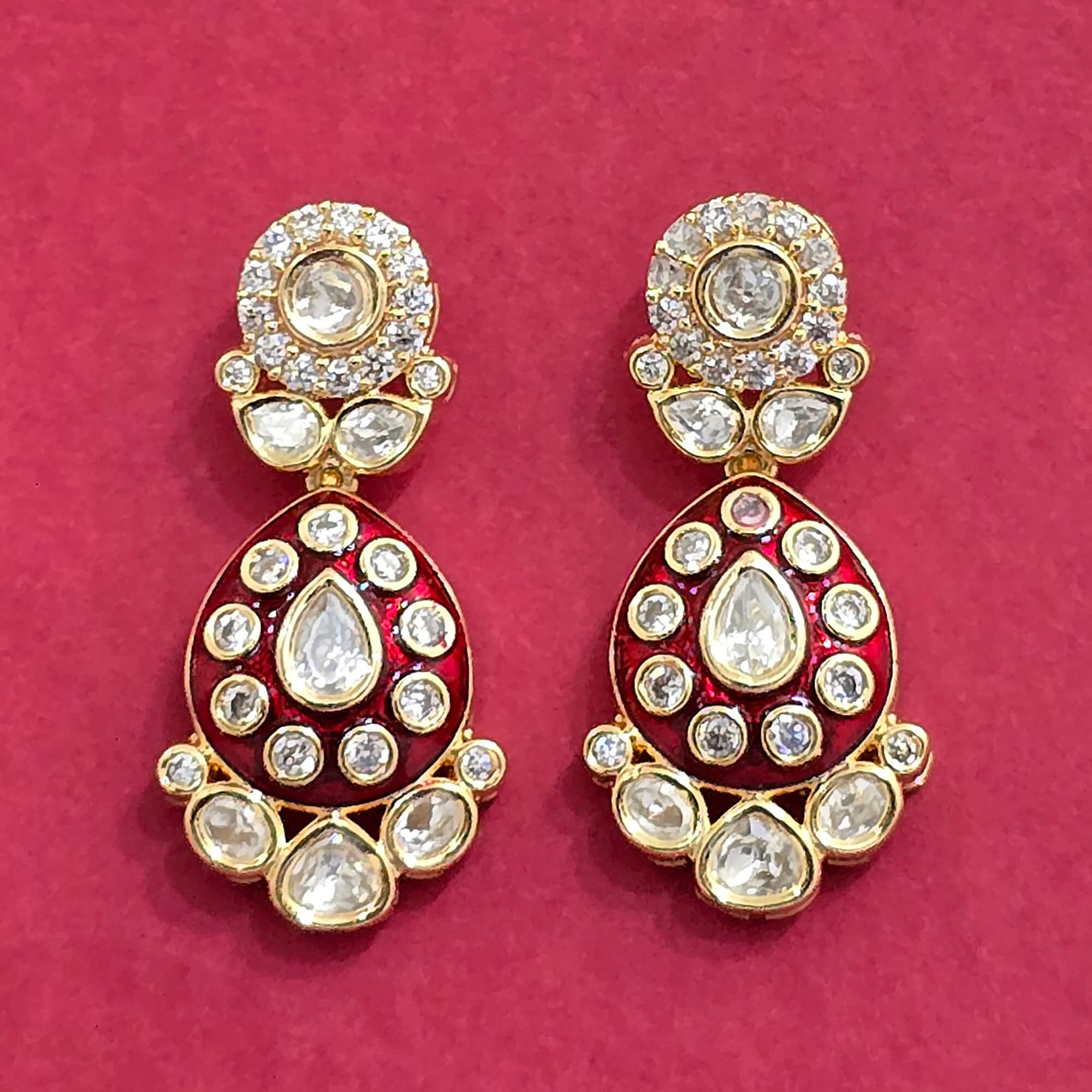 Kanhai Jewels offers an exclusive collection of finest quality crafted Fashion Jewellery in various colors. We make sure that our collection of Kundan Meenakari Earring With Carat Plating are beautiful, elegent & will surely galvanize you, because our products are unique, comfortable, fashion forward & very popular for the rich look. Base Metal of our product is Alloy, i.e Mixing of Copper & Brass. We pack all the products using quality packaging material to ensure safe and secure transportation.