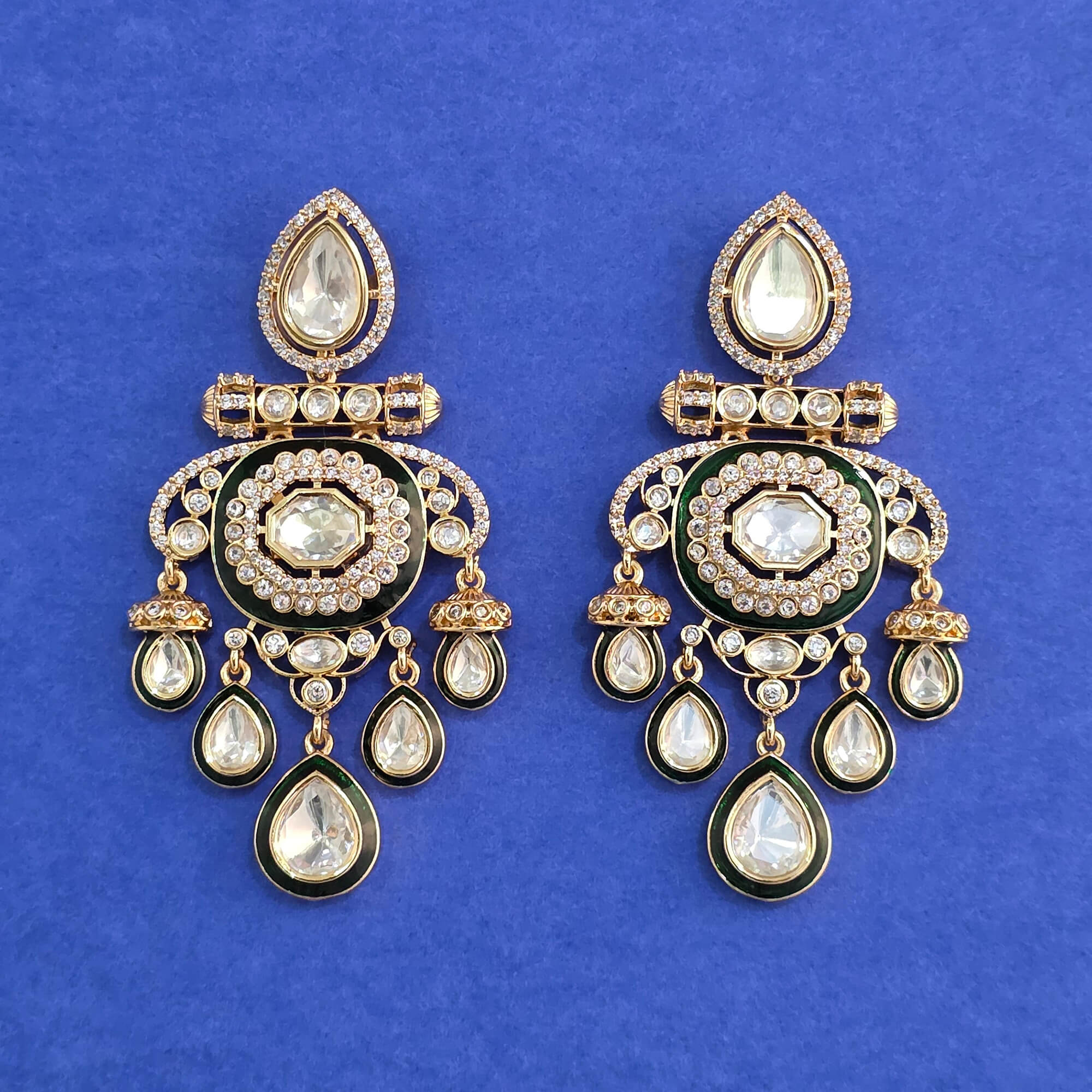 Kanhai Jewels offers an exclusive collection of finest quality crafted Fashion Jewellery in various colors. We make sure that our collection of Kundan Meenakari Earring With Carat Plating are beautiful, elegent & will surely galvanize you, because our products are unique, comfortable, fashion forward & very popular for the rich look. Base Metal of our product is Alloy, i.e Mixing of Copper & Brass. We pack all the products using quality packaging material to ensure safe and secure transportation.
