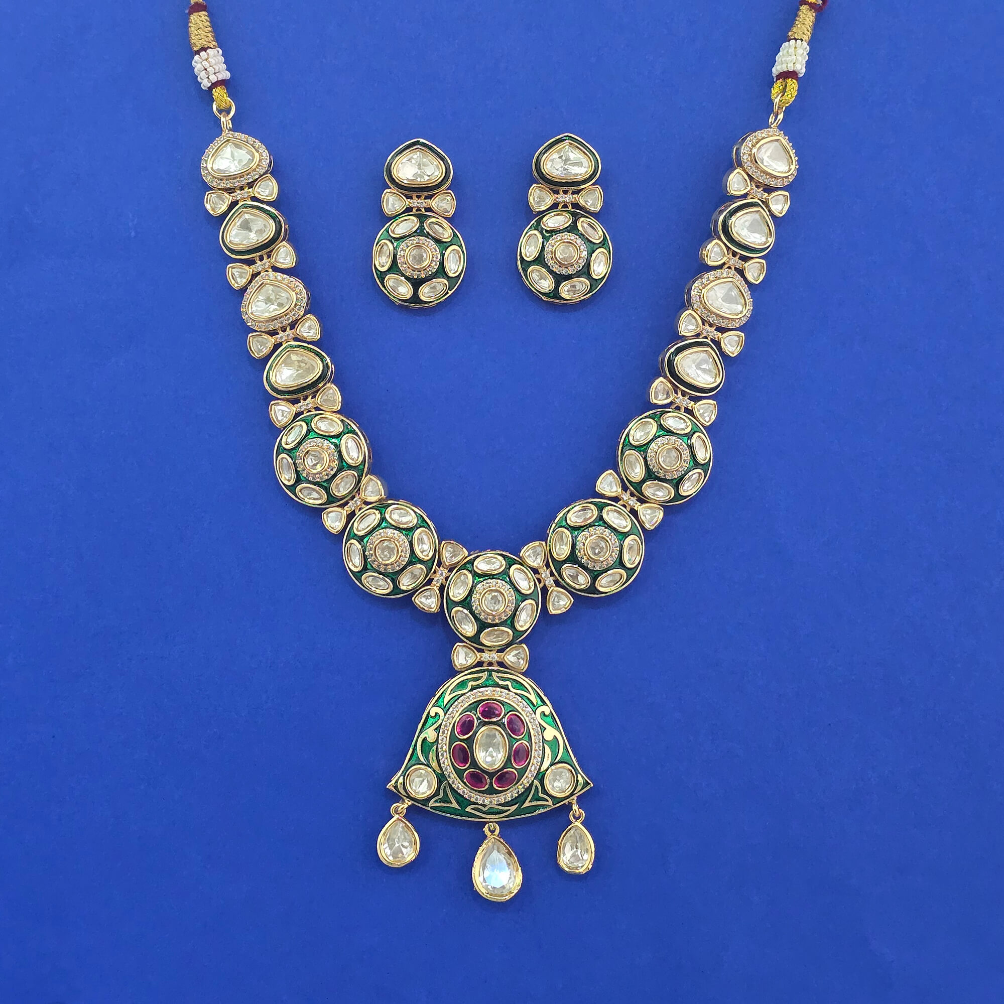 303380 Kundan Meenakari Necklace Set With Carat Gold PlatingNew