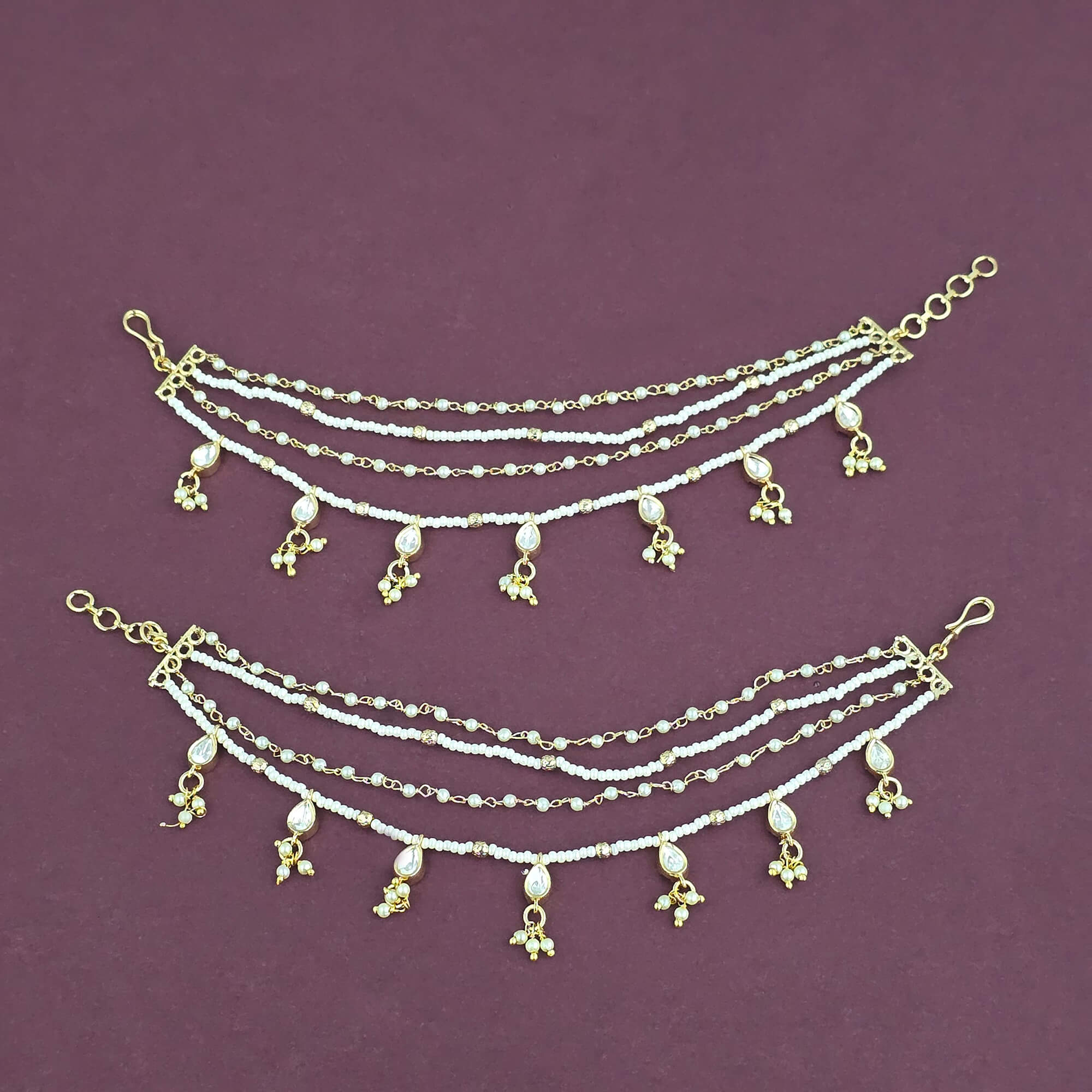 Kanhai Jewels offers an exclusive collection of finest quality crafted Fashion Jewellery in various colors. We make sure that our collection of Kundan Moti Ear Chain With Carat Gold Plating are beautiful, elegent & will surely galvanize you, because our products are unique, comfortable, fashion forward & very popular for the rich look. Base Metal of our product is Alloy, i.e Mixing of Copper & Brass. We pack all the products using quality packaging material to ensure safe and secure transportation.