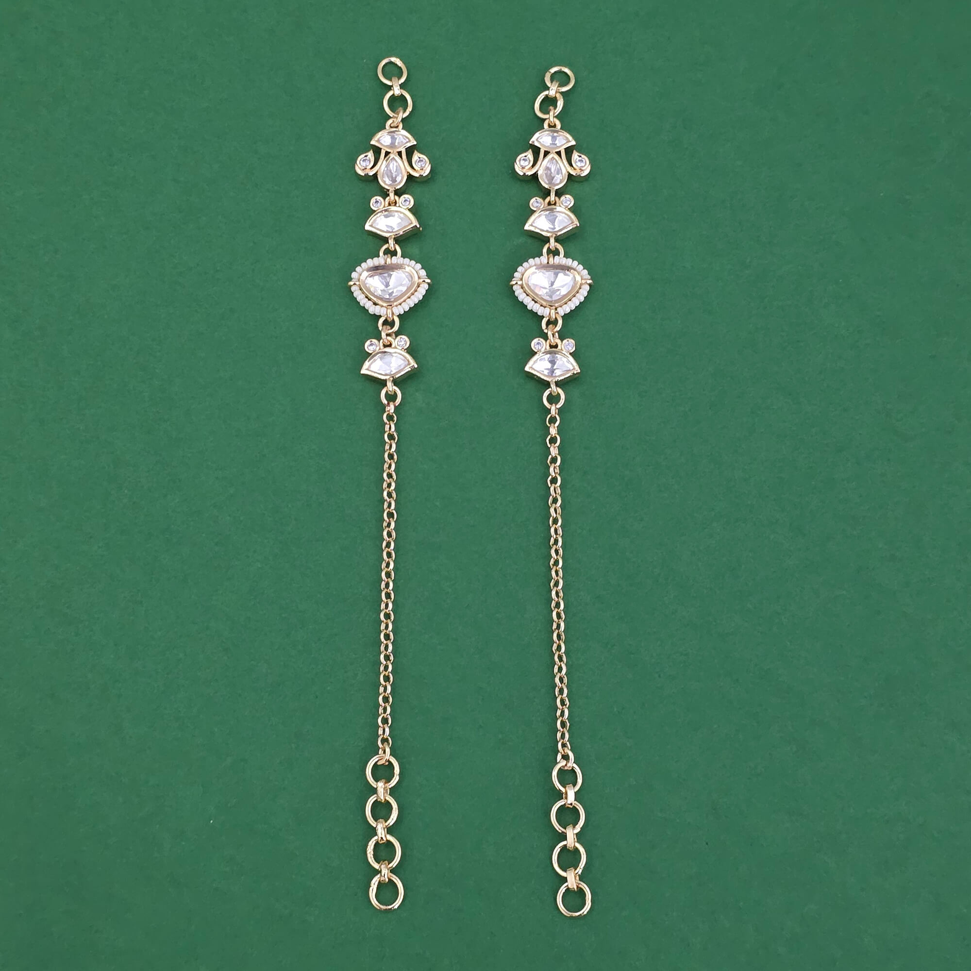 • Kundan Moti Ear Chain With Carat Gold Plating