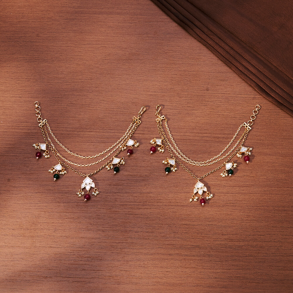Kanhai Jewels offers an exclusive collection of finest quality crafted Fashion Jewellery in various colors. We make sure that our collection of Kundan Moti Ear Chain With Rose Gold Plating are beautiful, elegent & will surely galvanize you, because our pr