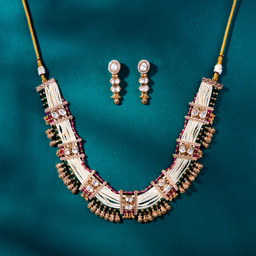 Kanhai Jewels Offers An Exclusive Collection Of Finest Quality Crafted Fashion Jewellery In Various Colors. We Make Sure That Our Collection Of Kundan Moti Necklace With Rose Gold Plating Are Beautiful, Elegent & Will Surely Galvanize You, Because Our Products Are Unique, Comfortable, Fashion Forward & Very Popular For The Rich Look. Base Metal Of Our Product Is Alloy, I.E Mixing Of Copper & Brass. We Pack All The Products Using Quality Packaging Material To Ensure Safe And Secure Transportation.