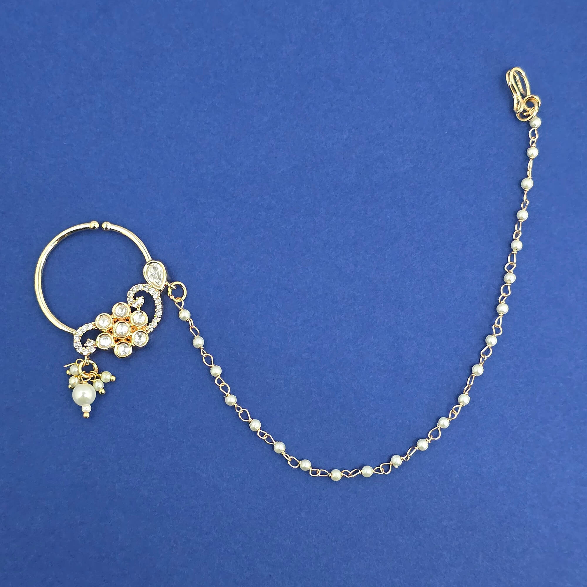 303616 Kundan Moti Nose Ring with Carat PlatingNew