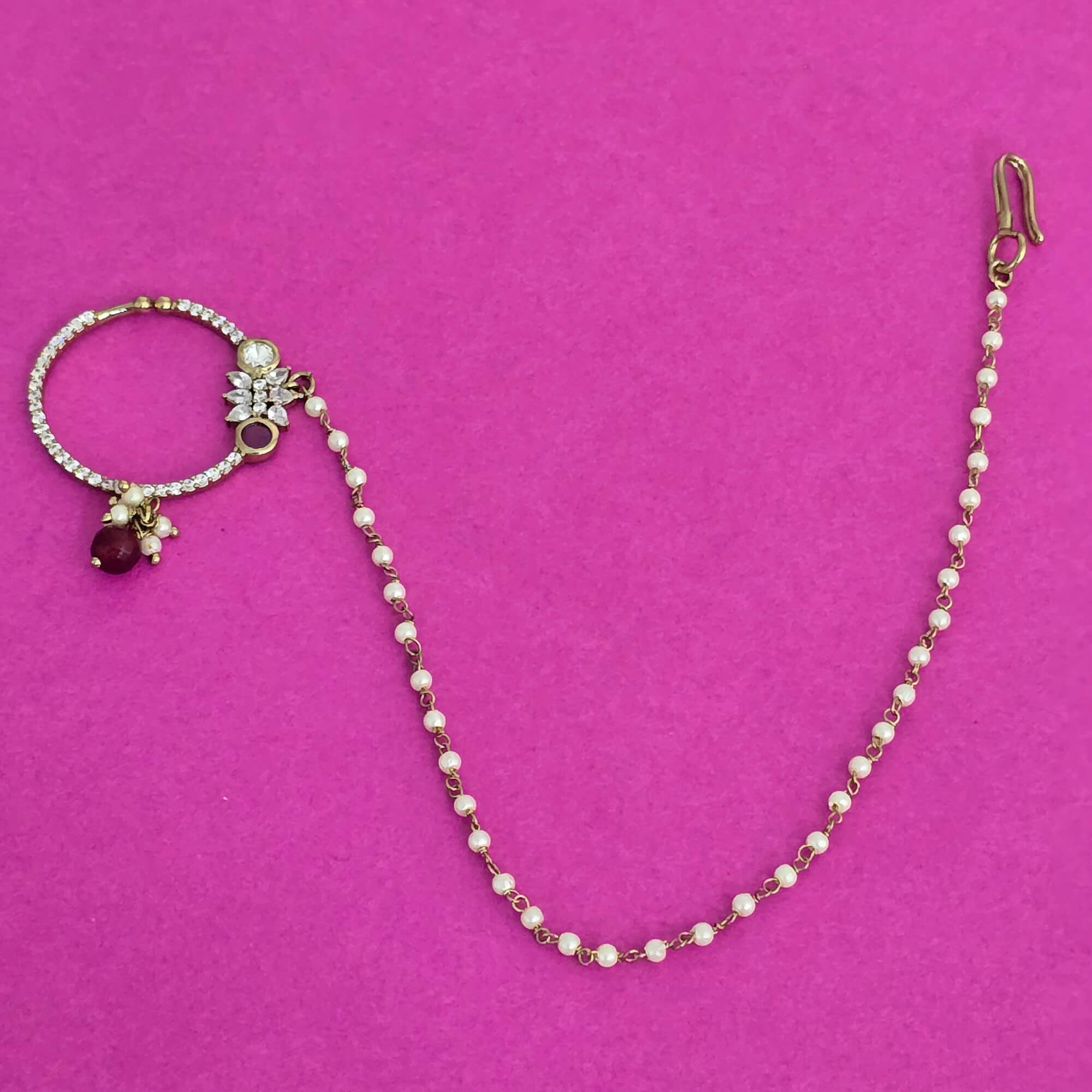 Home / Kundan Nose Ring / kundan moti nose ring with mehndi plating
