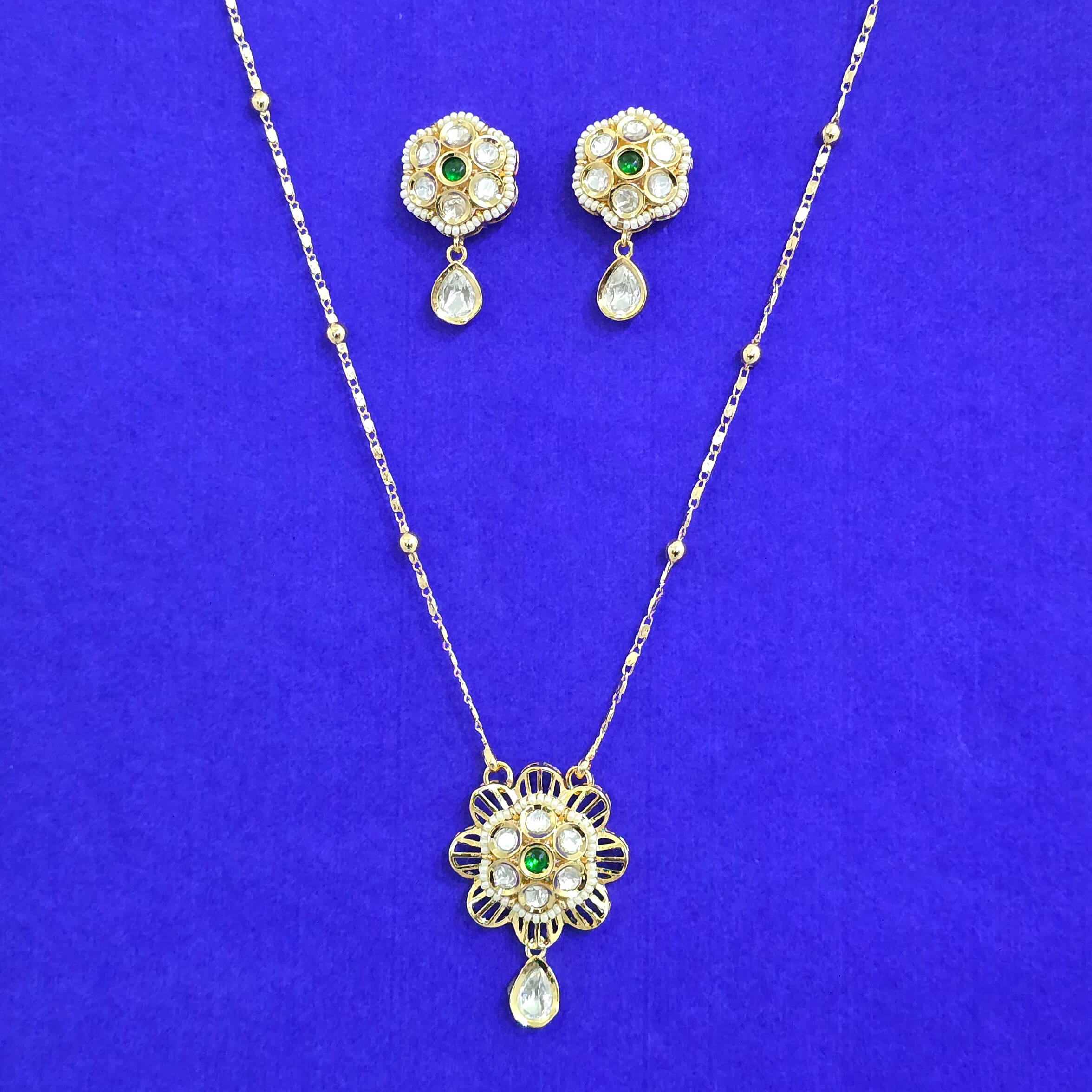 Kanhai Jewels Offers An Exclusive Collection Of Finest Quality Crafted Fashion Jewellery In Various Colors. We Make Sure That Our Collection Of Kundan Moti Pendant Set With Carat Gold Plating Are Beautiful, Elegent & Will Surely Galvanize You, Because Our Products Are Unique, Comfortable, Fashion Forward & Very Popular For The Rich Look. Base Metal Of Our Product Is Alloy, I.E Mixing Of Copper & Brass. We Pack All The Products Using Quality Packaging Material To Ensure Safe And Secure Transportation.