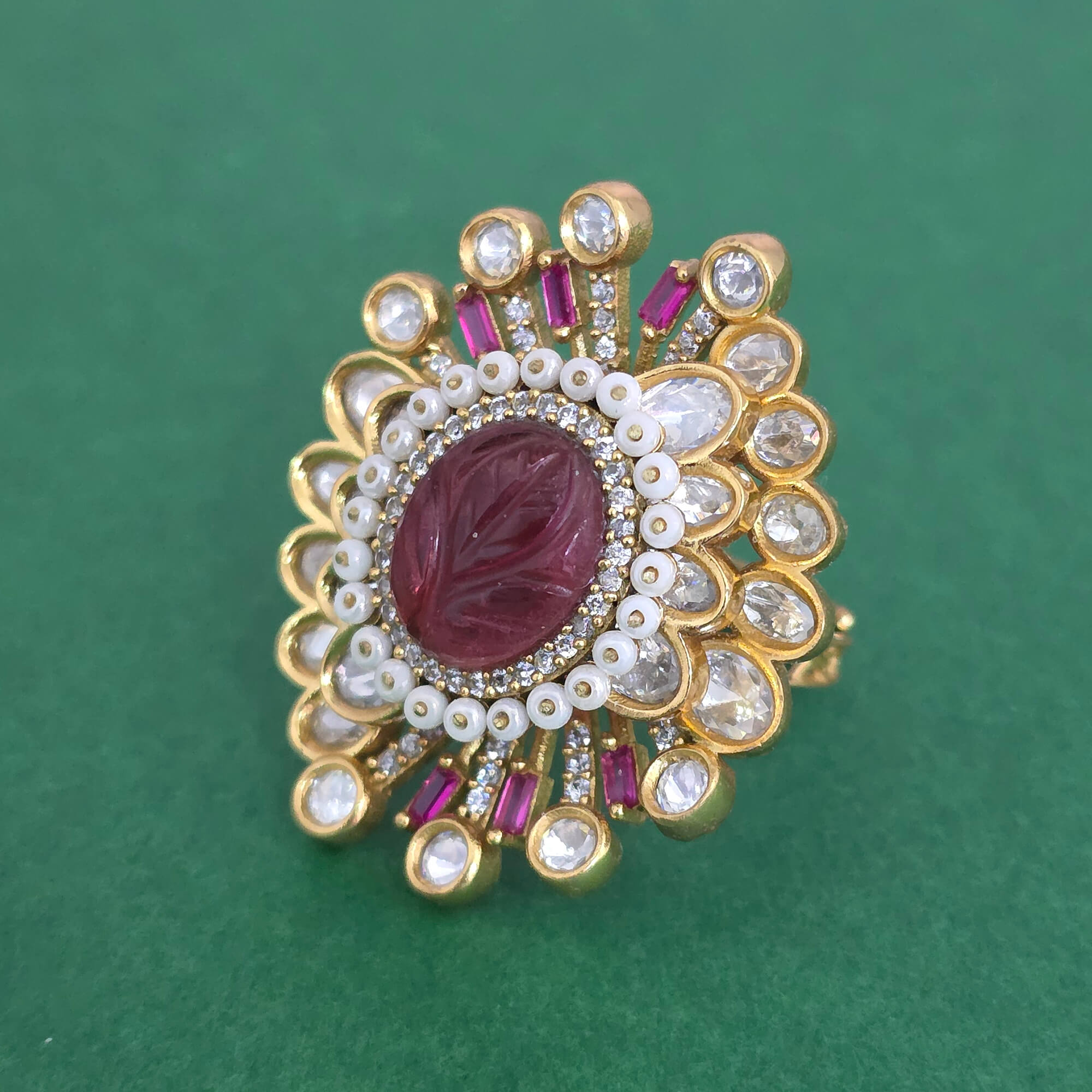 Home / Kundan Finger Ring / kundan moti ring with victorian plating