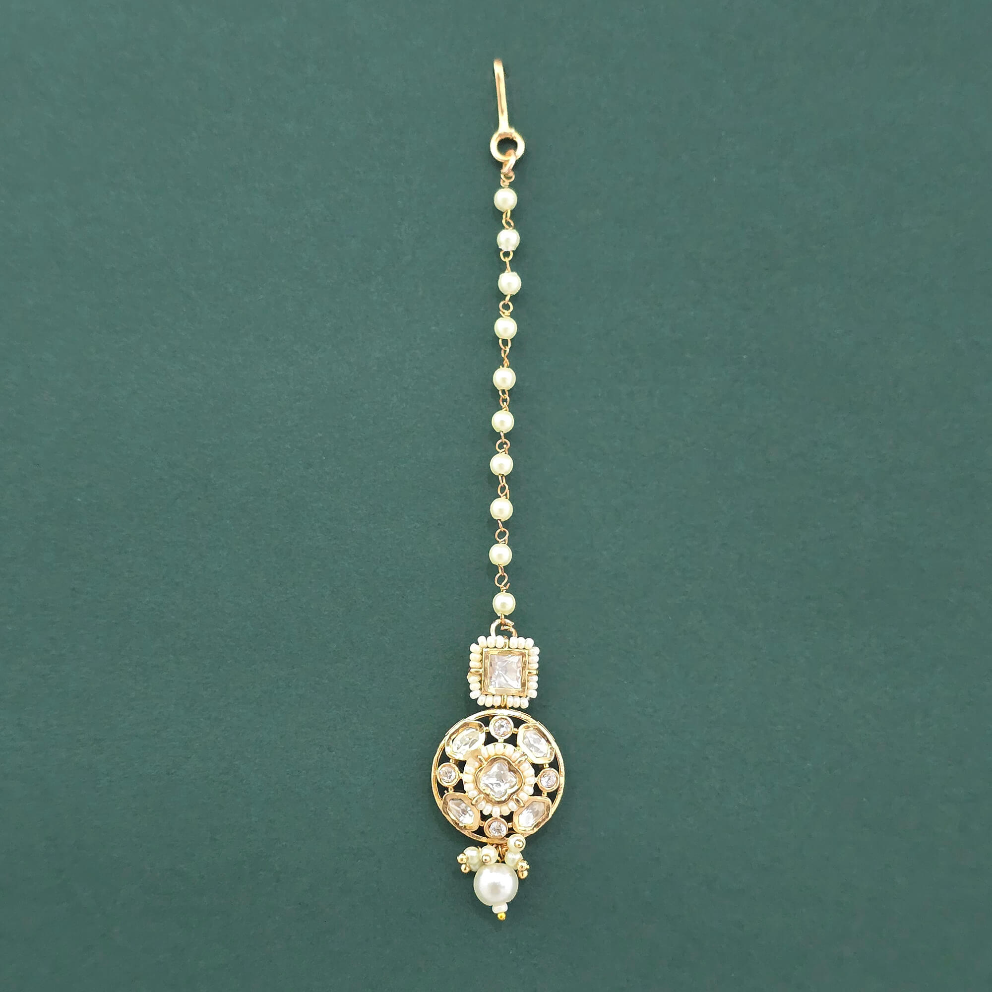 352749 Kundan Moti Tikka With Carat Gold PlatingNew