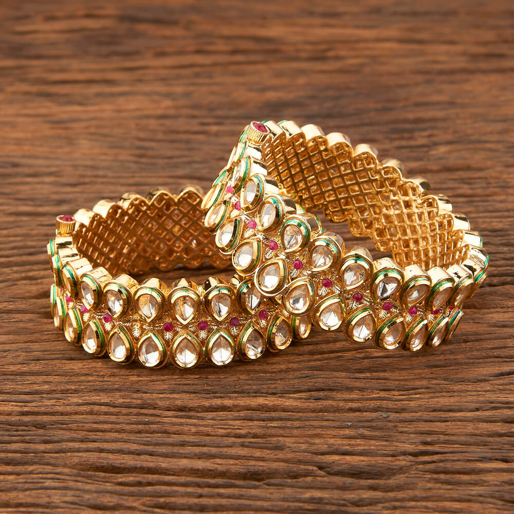 Kanhai Jewels offers an exclusive collection of finest quality crafted Fashion Jewellery in various colors. We make sure that our collection of Kundan Openable Bangles With Gold Plating are beautiful, elegent & will surely galvanize you, because our products are unique, comfortable, fashion forward & very popular for the rich look. Base Metal of our product is Alloy. We pack all the products using quality packaging material to ensure safe and secure transportation.