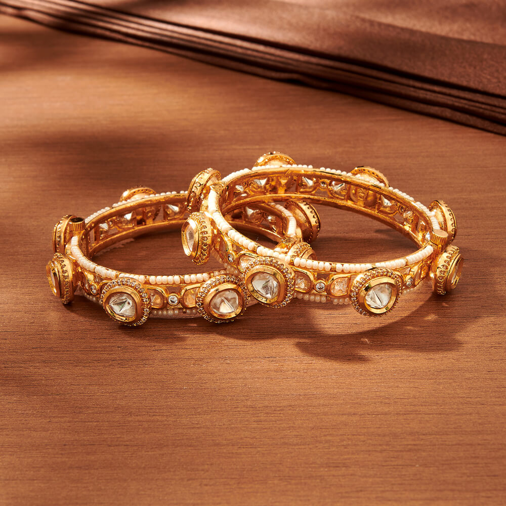 Kanhai Jewels offers an exclusive collection of finest quality crafted Fashion Jewellery in various colors. We make sure that our collection of Kundan Openable Bangles With Gold Plating are beautiful, elegent & will surely galvanize you, because our products are unique, comfortable, fashion forward & very popular for the rich look. Base Metal of our product is Alloy, i.e Mixing of Copper & Brass. We pack all the products using quality packaging material to ensure safe and secure transportation.