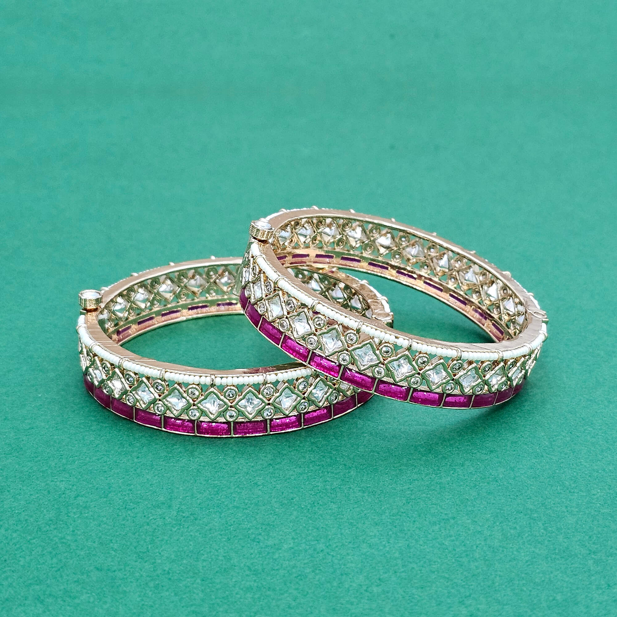 Home / Kundan Bangles / kundan openable bangles with rose gold plating