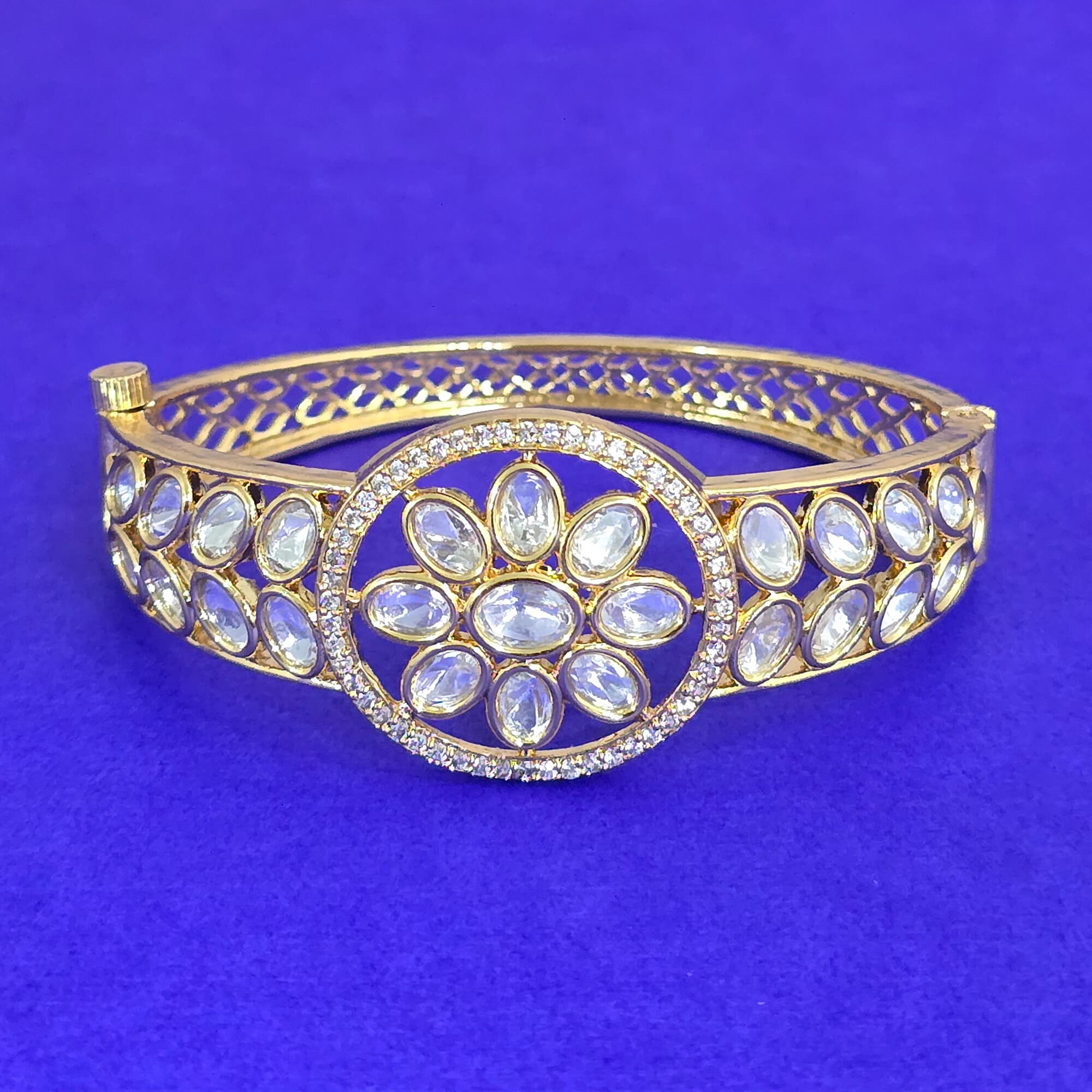 Kanhai Jewels offers an exclusive collection of finest quality crafted Fashion Jewellery in various colors. We make sure that our collection of Kundan Openable Kada With Carat Gold Plating are beautiful, elegent & will surely galvanize you, because our products are unique, comfortable, fashion forward & very popular for the rich look. Base Metal of our product is Alloy, i.e Mixing of Copper & Brass. We pack all the products using quality packaging material to ensure safe and secure transportation.