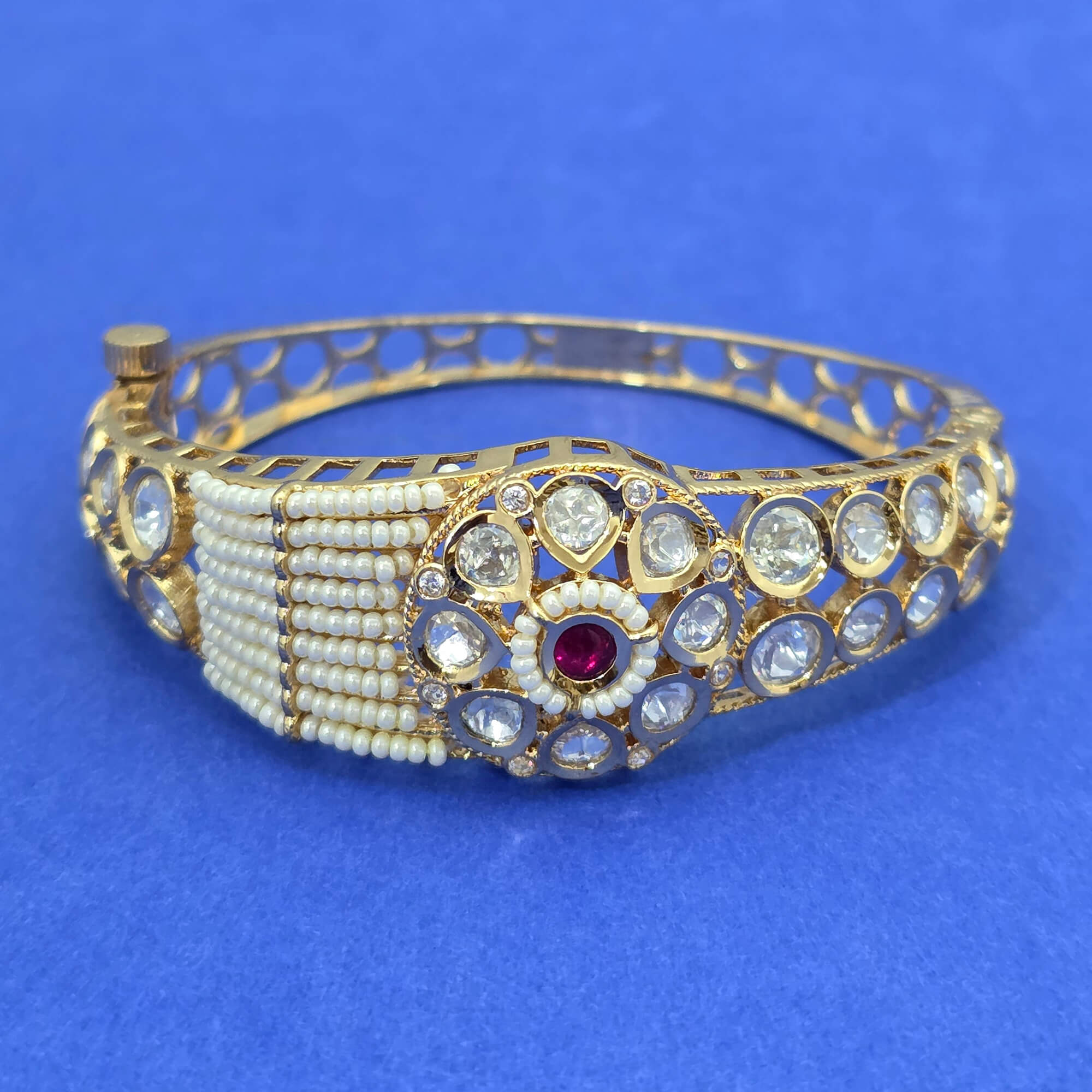 Kanhai Jewels offers an exclusive collection of finest quality crafted Fashion Jewellery in various colors. We make sure that our collection of Kundan Openable Kada With Carat Gold Plating are beautiful, elegent & will surely galvanize you, because our products are unique, comfortable, fashion forward & very popular for the rich look. Base Metal of our product is Alloy, i.e Mixing of Copper & Brass. We pack all the products using quality packaging material to ensure safe and secure transportation.