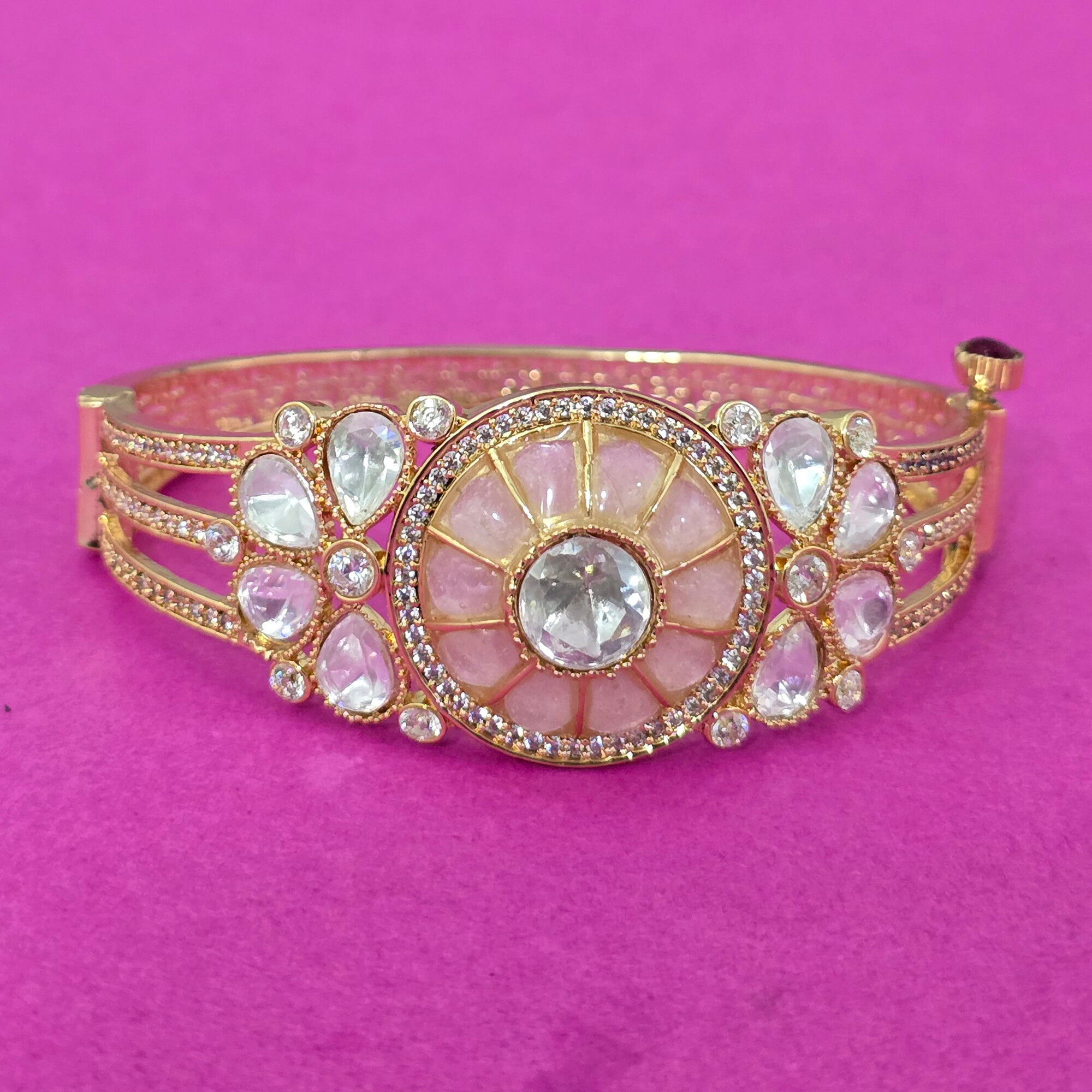 Kanhai Jewels offers an exclusive collection of finest quality crafted Fashion Jewellery in various colors. We make sure that our collection of Kundan Openable Kada With Carat Plating are beautiful, elegent & will surely galvanize you, because our products are unique, comfortable, fashion forward & very popular for the rich look. Base Metal of our product is Alloy, i.e Mixing of Copper & Brass. We pack all the products using quality packaging material to ensure safe and secure transportation.