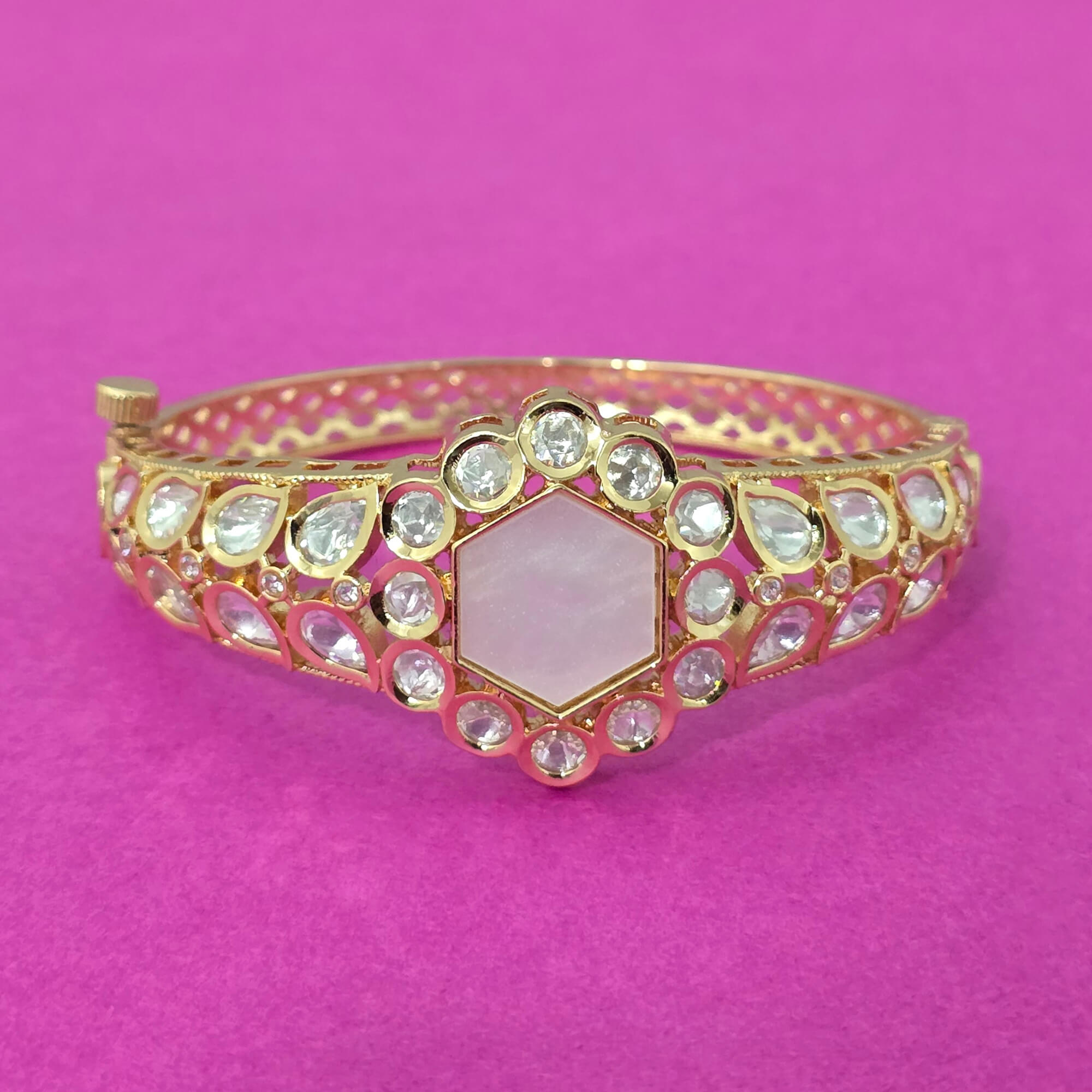 Kanhai Jewels offers an exclusive collection of finest quality crafted Fashion Jewellery in various colors. We make sure that our collection of Kundan Openable Kada With Gold Plating are beautiful, elegent & will surely galvanize you, because our products are unique, comfortable, fashion forward & very popular for the rich look. Base Metal of our product is Alloy, i.e Mixing of Copper & Brass. We pack all the products using quality packaging material to ensure safe and secure transportation.