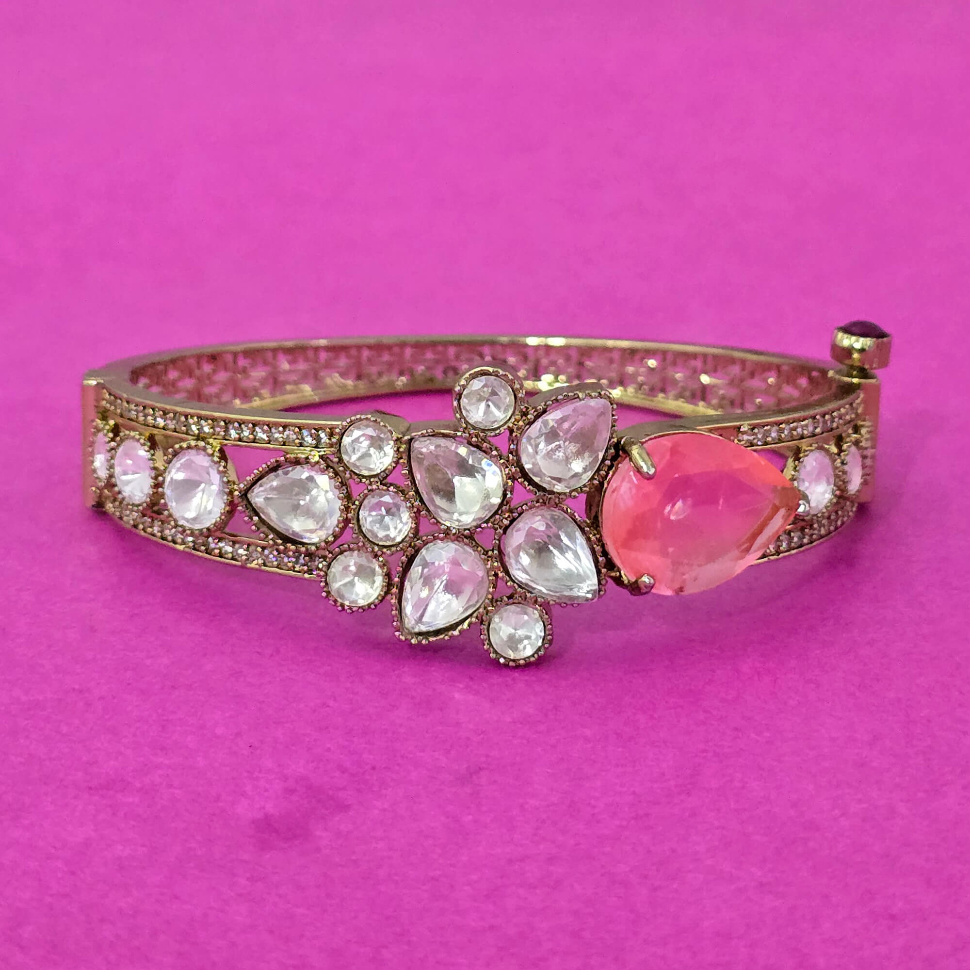 Kanhai Jewels offers an exclusive collection of finest quality crafted Fashion Jewellery in various colors. We make sure that our collection of Kundan Openable Kada With Mehndi Plating are beautiful, elegent & will surely galvanize you, because our products are unique, comfortable, fashion forward & very popular for the rich look. Base Metal of our product is Alloy, i.e Mixing of Copper & Brass. We pack all the products using quality packaging material to ensure safe and secure transportation.