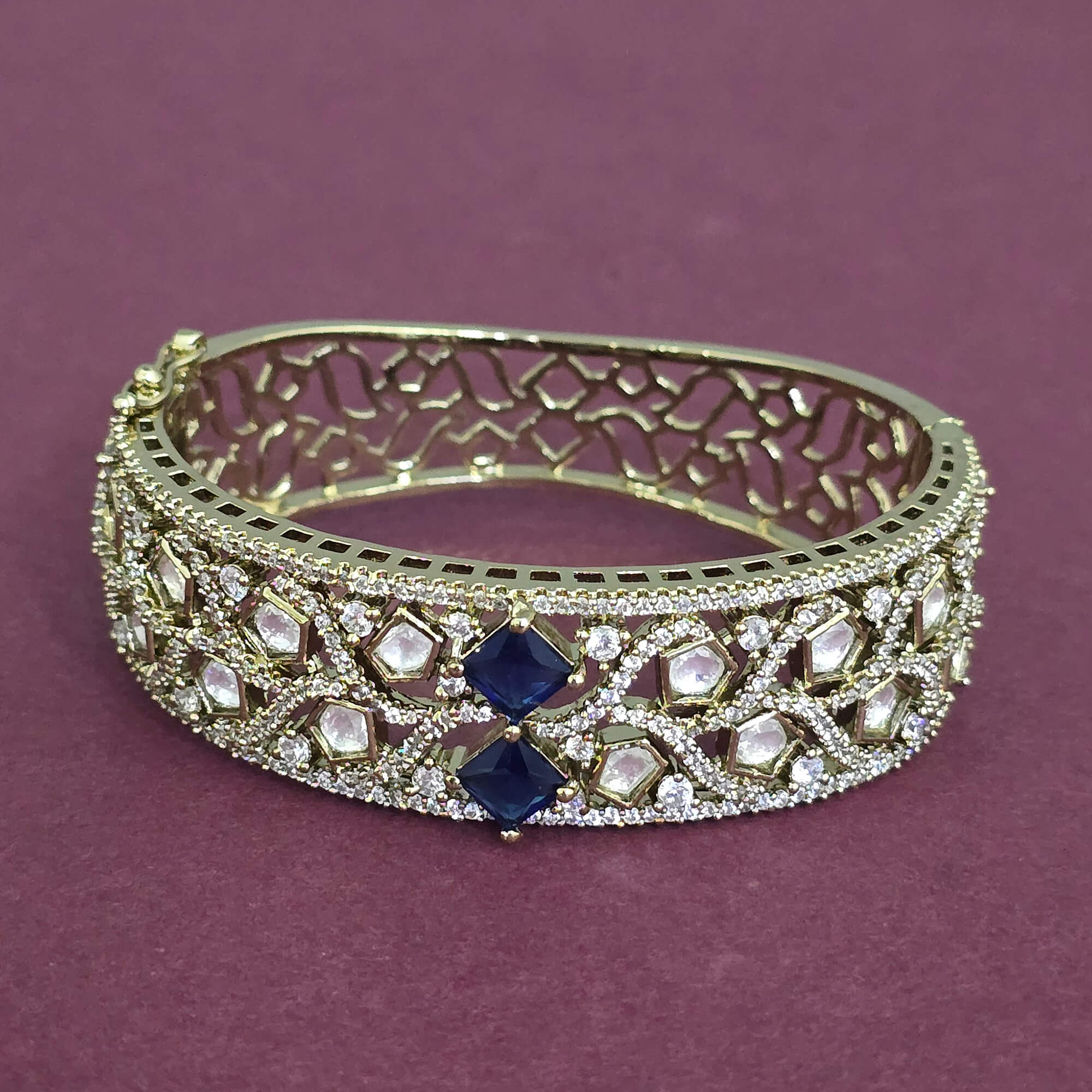352719 Kundan Openable Kada With Mehndi Plating