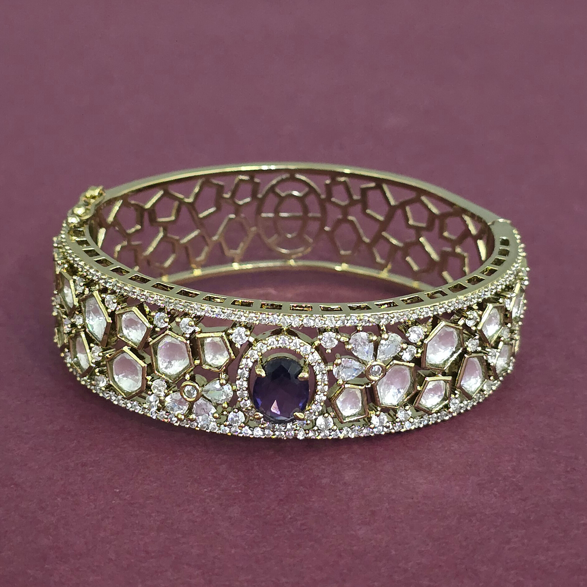 Kanhai Jewels offers an exclusive collection of finest quality crafted Fashion Jewellery in various colors. We make sure that our collection of Kundan Openable Kada With Mehndi Plating are beautiful, elegent & will surely galvanize you, because our products are unique, comfortable, fashion forward & very popular for the rich look. Base Metal of our product is Alloy, i.e Mixing of Copper & Brass. We pack all the products using quality packaging material to ensure safe and secure transportation.