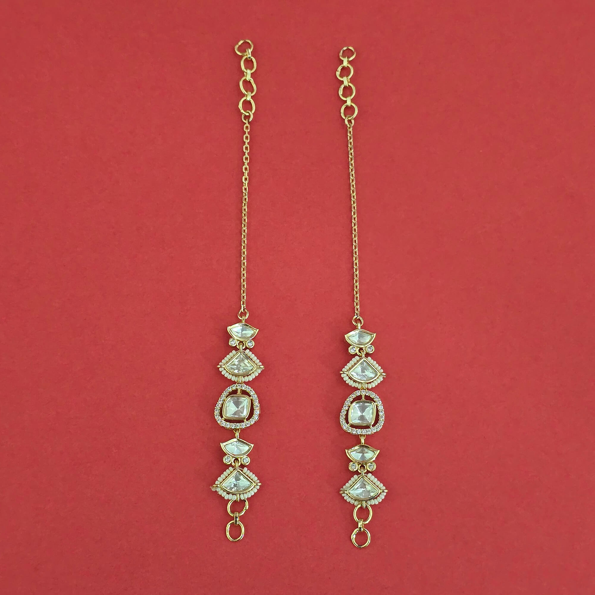 303573 Kundan Pearl Ear Chain With Carat PlatingNew