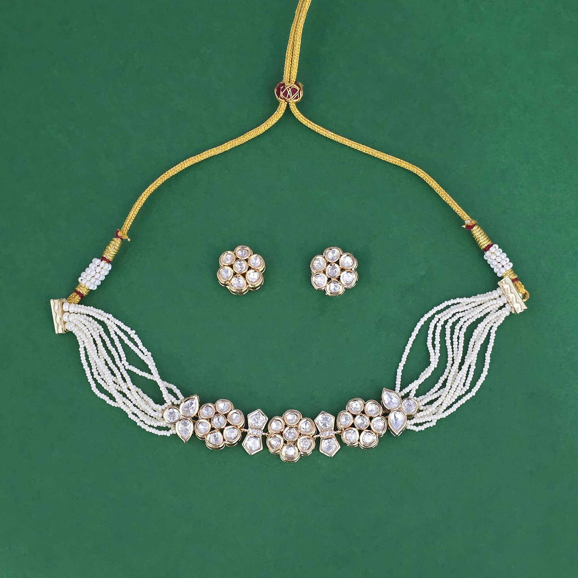 Kanhai Jewels offers an exclusive collection of finest quality crafted Fashion Jewellery in various colors. We make sure that our collection of Kundan Pearl Necklace Set With Carat Gold Plating are beautiful, elegent & will surely galvanize you, because our products are unique, comfortable, fashion forward & very popular for the rich look. Base Metal of our product is Alloy, i.e Mixing of Copper & Brass. We pack all the products using quality packaging material to ensure safe and secure transportation.