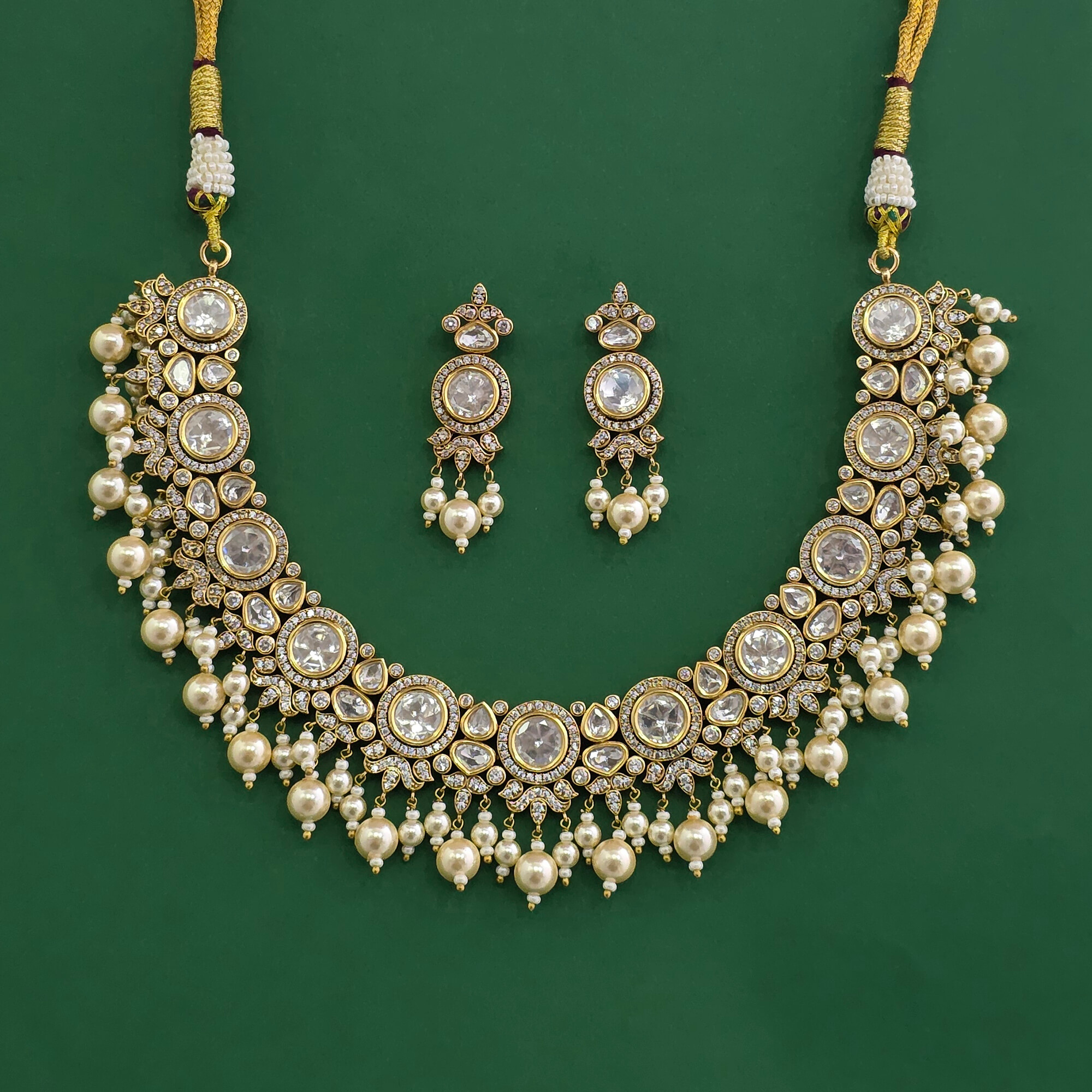 • Kundan Pearl Necklace Set With Victorian Plating