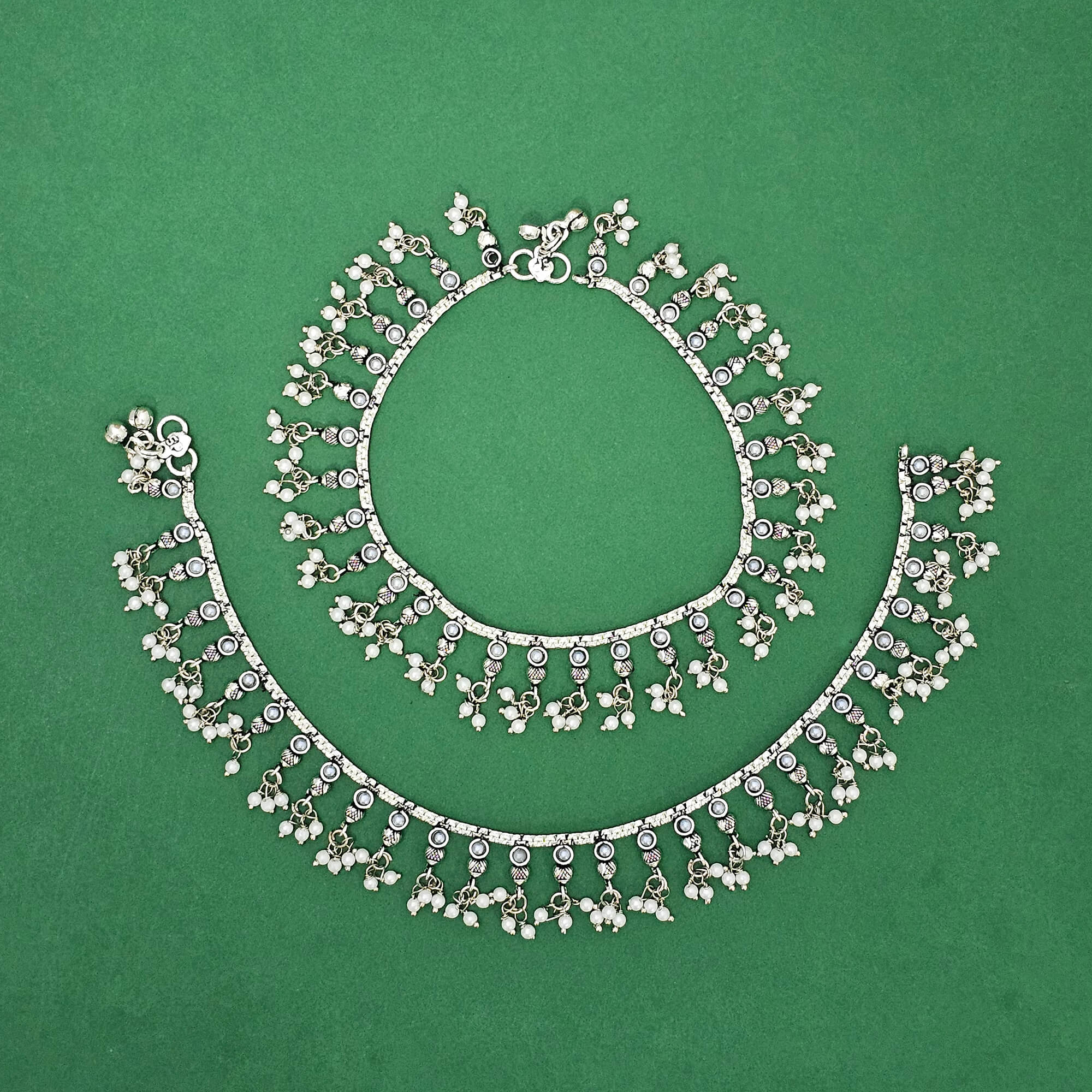 Kanhai Jewels offers an exclusive collection of finest quality crafted Fashion Jewellery in various colors. We make sure that our collection of Moti Payal With Oxidised Plating are beautiful, elegent & will surely galvanize you, because our products are unique, comfortable, fashion forward & very popular for the rich look. Base Metal of our product is Alloy, i.e Mixing of Copper, Brass & Zinc. We pack all the products using quality packaging material to ensure safe and secure transportation.