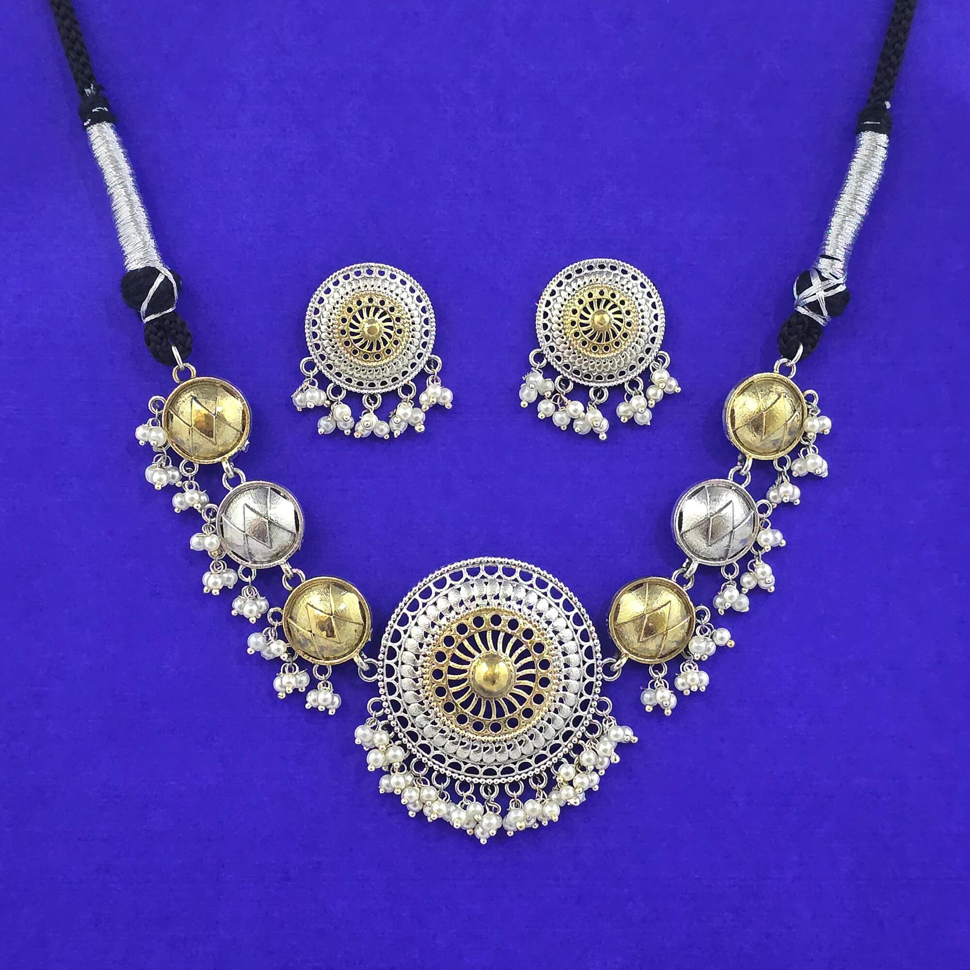 Kanhai Jewels offers an exclusive collection of finest quality crafted Fashion Jewellery in various colors. We make sure that our collection of Oxidised Choker Necklace Set With 2 Tone Plating are beautiful, elegent & will surely galvanize you, because our products are unique, comfortable, fashion forward & very popular for the rich look. Base Metal of our product is Alloy, i.e Mixing of Copper & Brass. We pack all the products using quality packaging material to ensure safe and secure transportation.