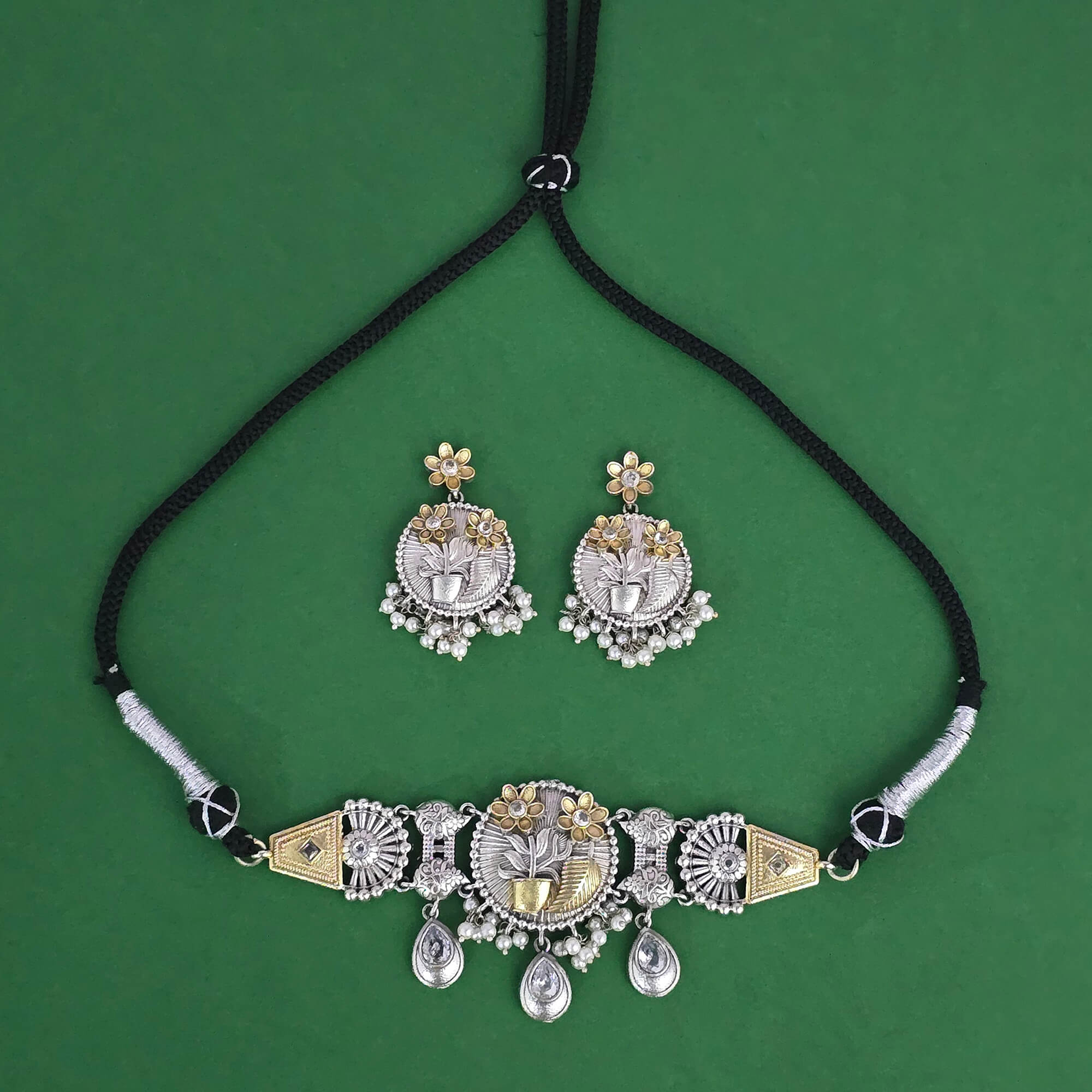 Kanhai Jewels offers an exclusive collection of finest quality crafted Fashion Jewellery in various colors. We make sure that our collection of Oxidised Choker Necklace With 2 Tone Plating are beautiful, elegent & will surely galvanize you, because our products are unique, comfortable, fashion forward & very popular for the rich look. Base Metal of our product is Alloy, i.e Mixing of Copper, Brass & Zinc. We pack all the products using quality packaging material to ensure safe and secure transportation.
