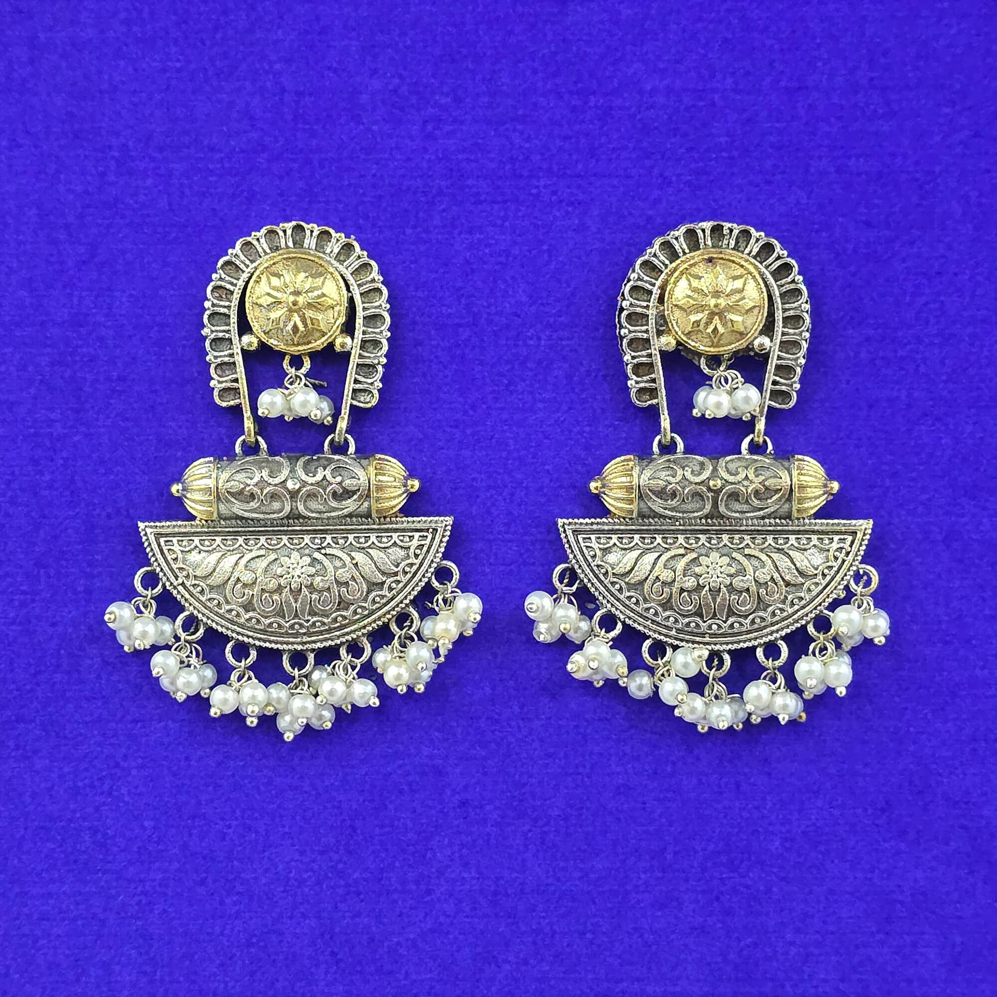 Kanhai Jewels offers an exclusive collection of finest quality crafted Fashion Jewellery in various colors. We make sure that our collection of Oxidised Classic Earring With 2 Tone Plating are beautiful, elegent & will surely galvanize you, because our products are unique, comfortable, fashion forward & very popular for the rich look. Base Metal of our product is Alloy, i.e Mixing of Copper & Brass. We pack all the products using quality packaging material to ensure safe and secure transportation.