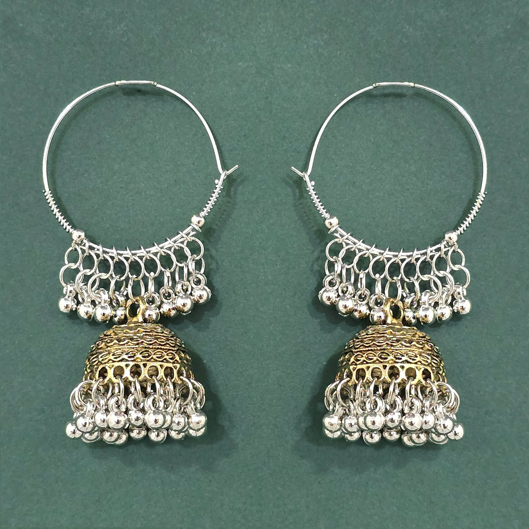 • Oxidised Jhumki With 2 Tone Plating