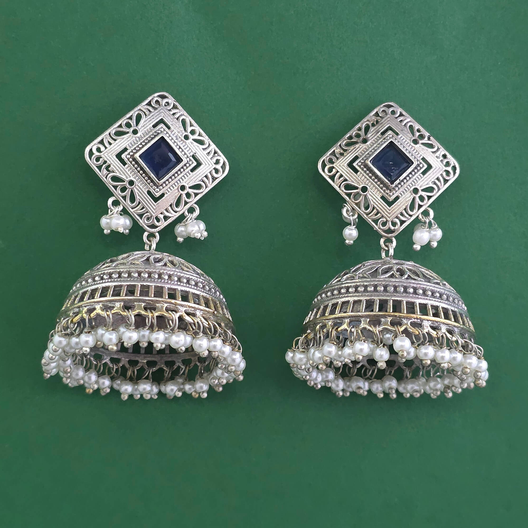 Kanhai Jewels offers an exclusive collection of finest quality crafted Fashion Jewellery in various colors. We make sure that our collection of Oxidised Jhumki With 2 Tone Plating are beautiful, elegent & will surely galvanize you, because our products are unique, comfortable, fashion forward & very popular for the rich look. Base Metal of our product is Alloy, i.e Mixing of Copper, Brass & Zinc. We pack all the products using quality packaging material to ensure safe and secure transportation.