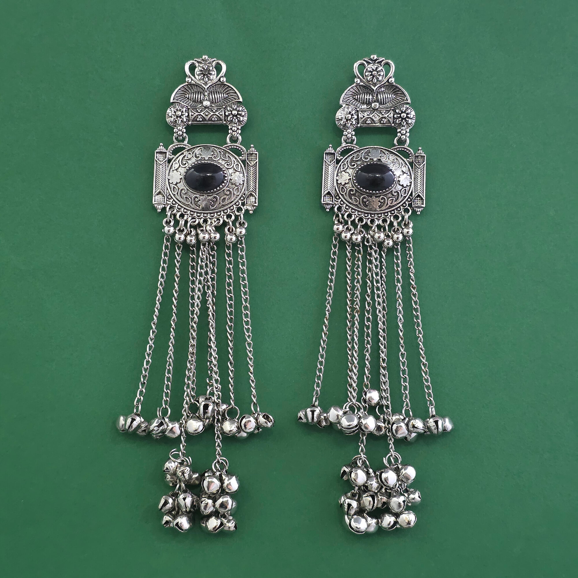 Kanhai Jewels offers an exclusive collection of finest quality crafted Fashion Jewellery in various colors. We make sure that our collection of Oxidised Long Earring With Rhodium Plating are beautiful, elegent & will surely galvanize you, because our products are unique, comfortable, fashion forward & very popular for the rich look. Base Metal of our product is Alloy, i.e Mixing of Copper, Brass & Zinc. We pack all the products using quality packaging material to ensure safe and secure transportation.