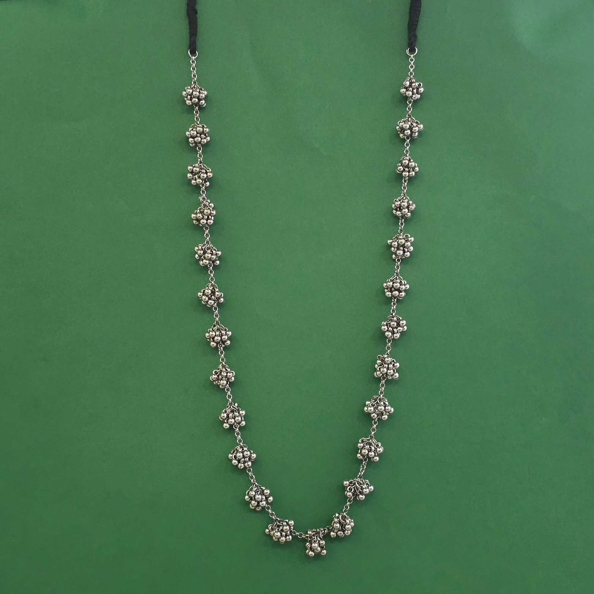 Kanhai Jewels offers an exclusive collection of finest quality crafted Fashion Jewellery in various colors. We make sure that our collection of Oxidised Long Necklace With Rhodium Plating are beautiful, elegent & will surely galvanize you, because our products are unique, comfortable, fashion forward & very popular for the rich look. Base Metal of our product is Alloy, i.e Mixing of Copper, Brass & Zinc. We pack all the products using quality packaging material to ensure safe and secure transportation.