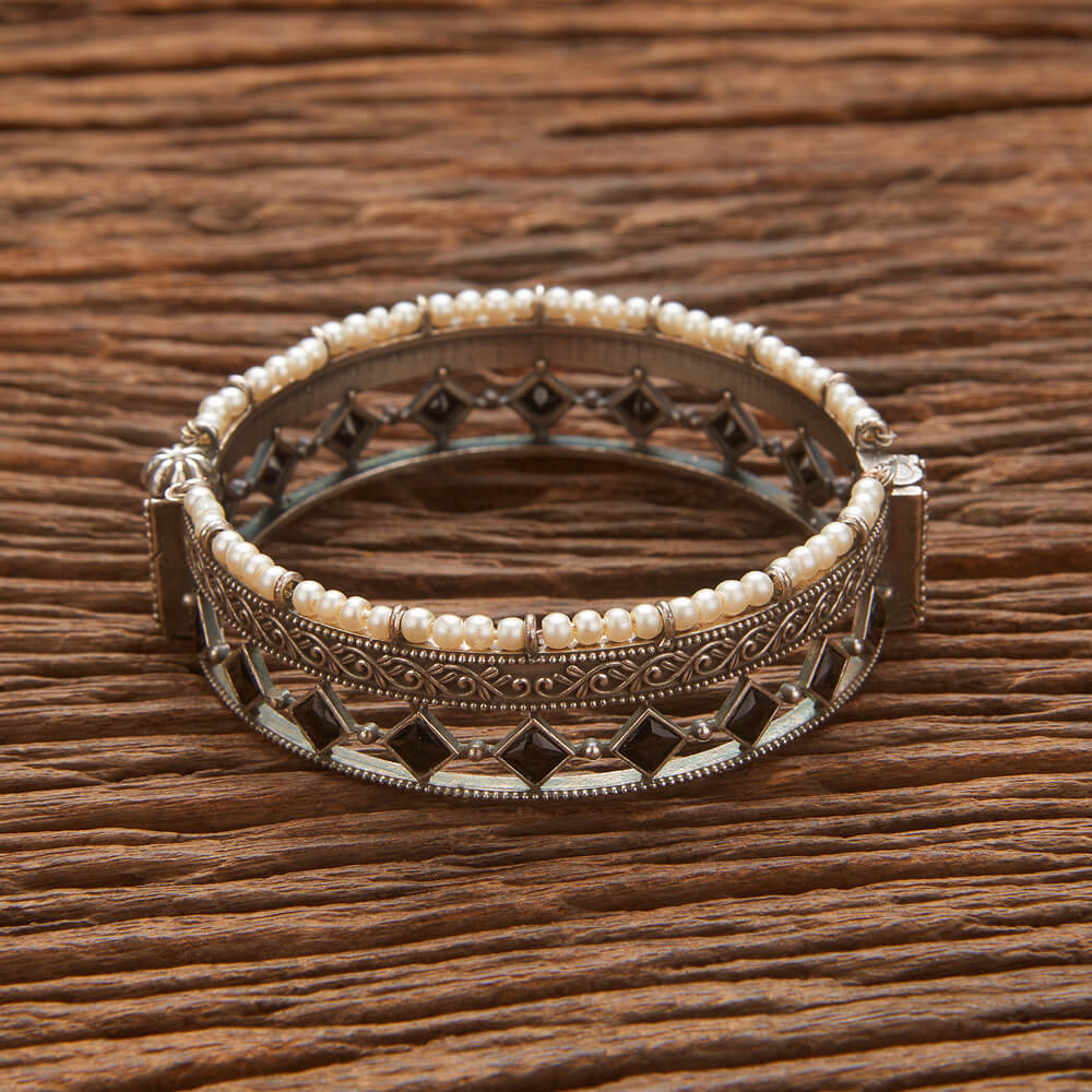 Kanhai Jewels offers an exclusive collection of finest quality crafted Fashion Jewellery in various colors. We make sure that our collection of Pearl Kada With Oxidised Plating are beautiful, elegent & will surely galvanize you, because our products are unique, comfortable, fashion forward & very popular for the rich look. Base Metal of our product is Alloy, i.e Mixing of Copper, Brass & Zinc. We pack all the products using quality packaging material to ensure safe and secure transportation.