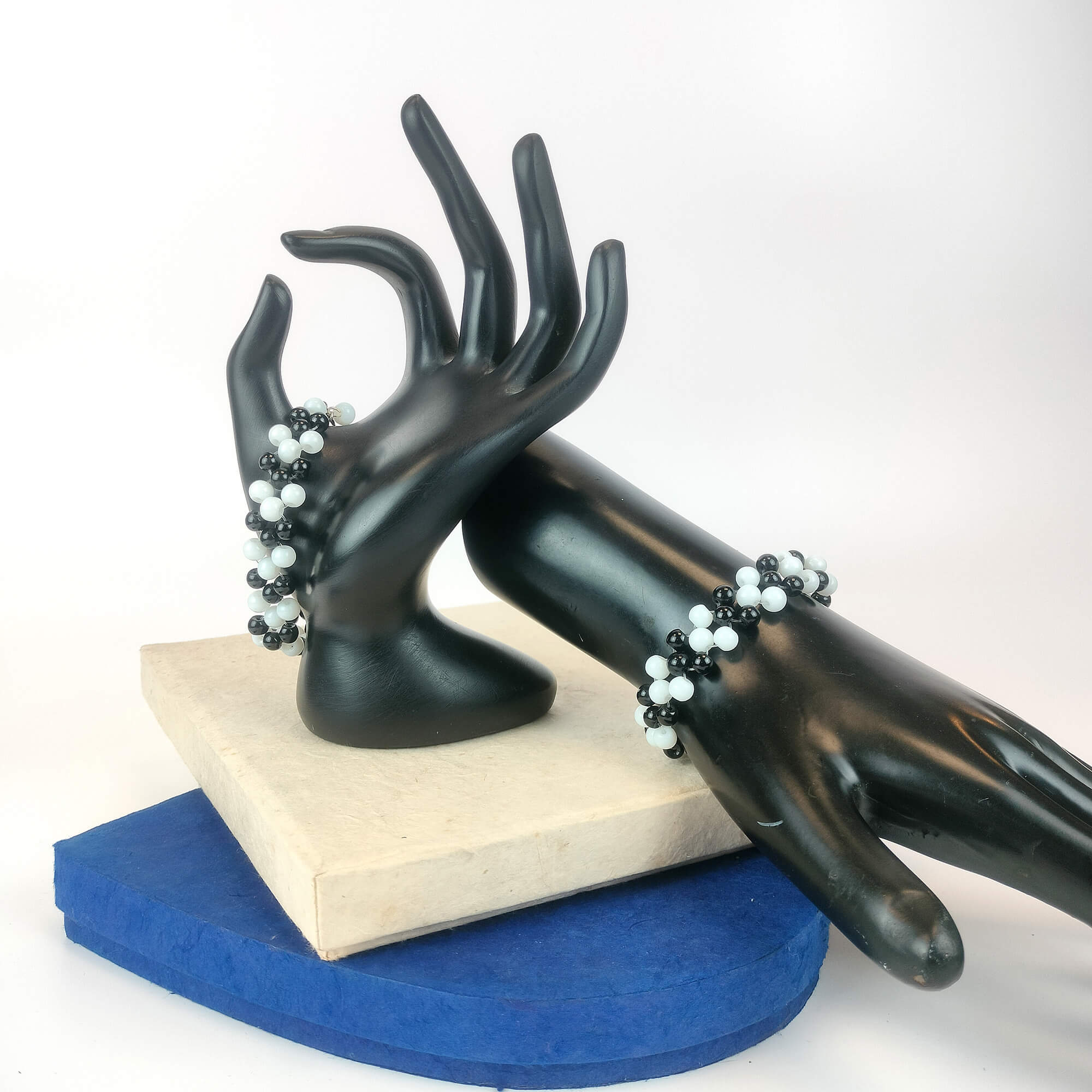 This timeless bracelet features a simple yet elegant design with alternating black and white beads. The classic color combination creates a sophisticated look that can be dressed up or down.