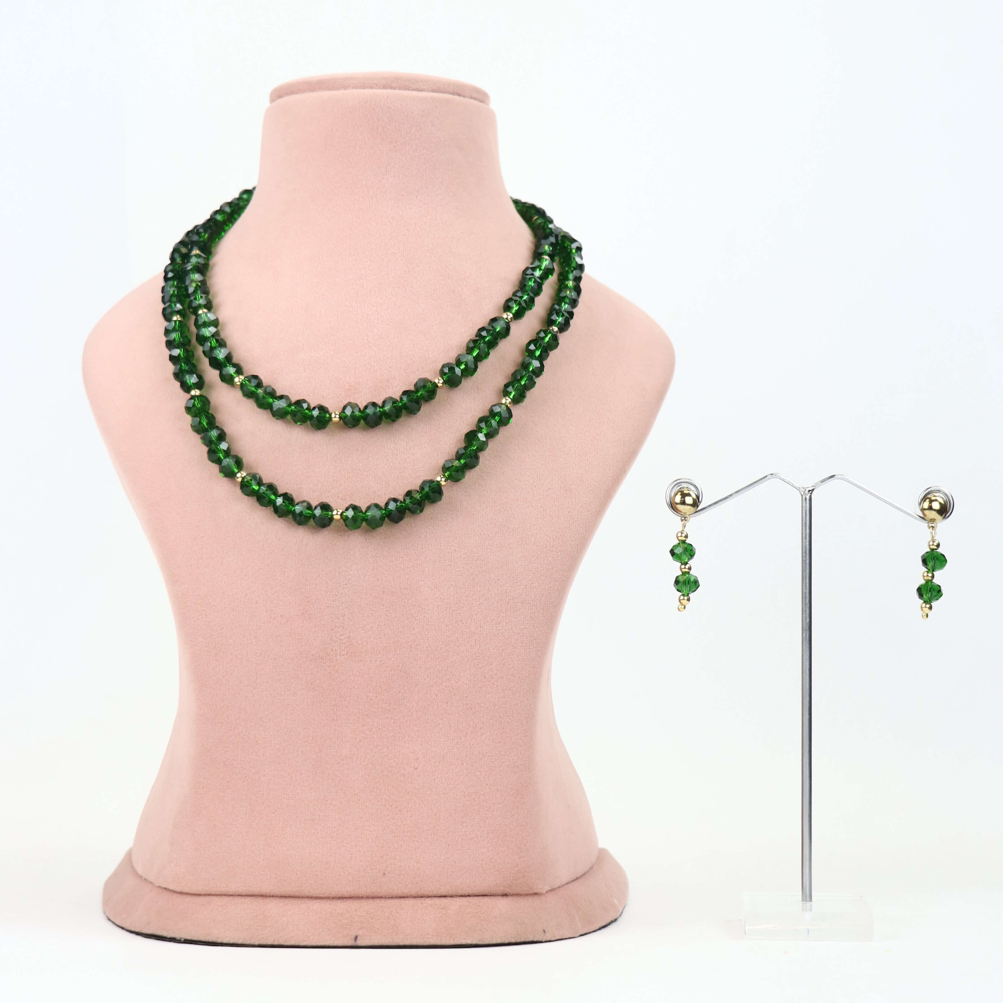Kanhai Jewels offers an exclusive collection of finest quality crafted Fashion Jewellery in various colors. We make sure that our collection of Western Emerald Green Faceted Glass Bead Necklace Set are beautiful, elegent & will surely galvanize you, because our products are unique, comfortable, fashion forward & very popular for the rich look. We pack all the products using quality packaging material to ensure safe and secure transportation.